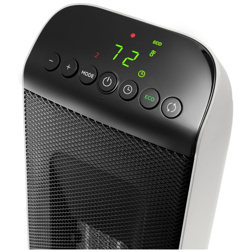 Aquecedor Torre Digital DeLonghi 1500w Cerâmico feito com materiais e embalagens reciclados controle remoto ECO oscilação