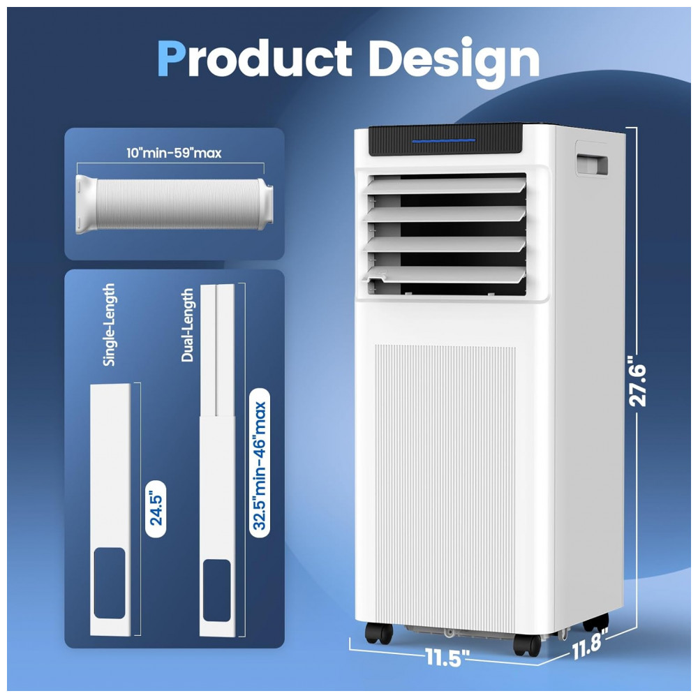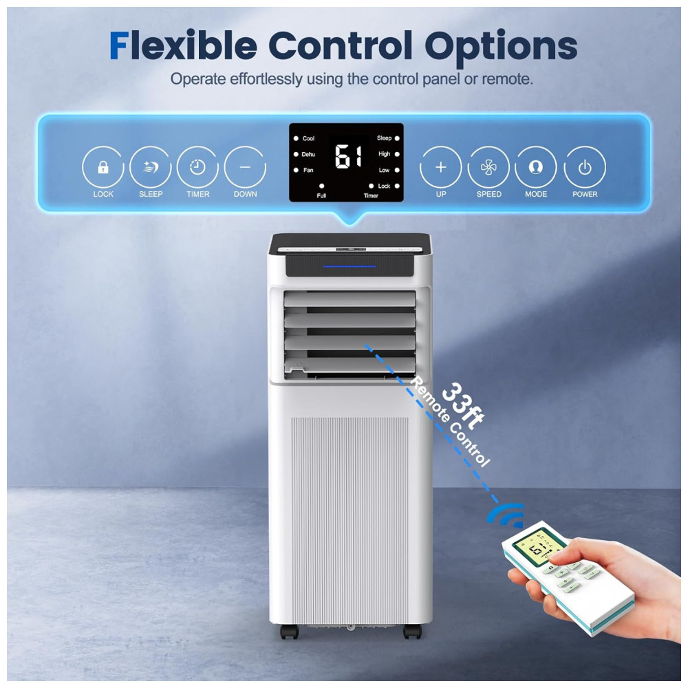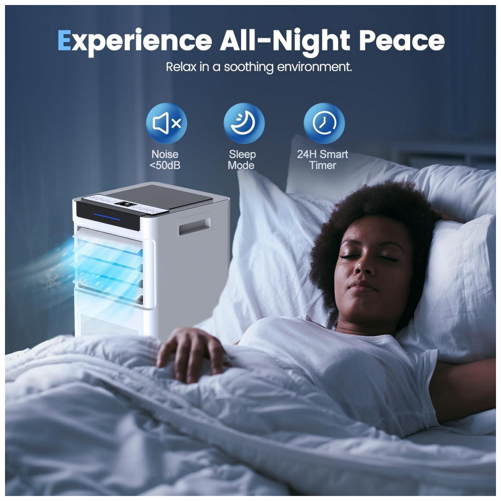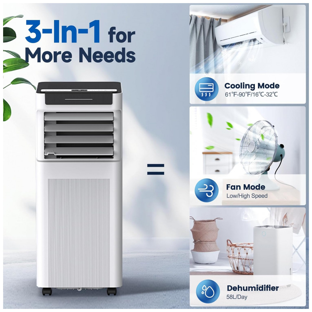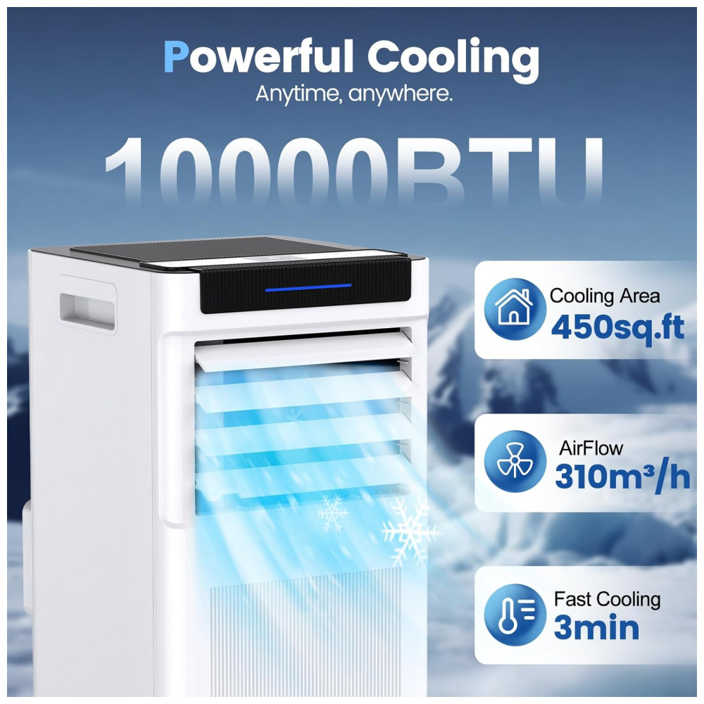 Precisando de conforto sem igual? O ar-condicionado portátil AIDIAM de 10000 BTU proporciona resfriamento rápido em apenas 3 minutos, mantendo quartos, escritórios, garagens ou oficinas perfeitamente frescos o dia todo. Além de refrigerar, ele atua como desumidificador e ventilador de alta ventilação, oferecendo ar fresco na primavera, alívio do calor no verão e ventilação no outono e inverno. Com controle remoto, painel de fácil uso, configuração rápida e sem ferramentas, garantindo tranquilidade e mobilidade suave. Silencioso, com modo noturno para noites de sono perfeitas. Com filtros removíveis e alças embutidas, é uma escolha versátil para quartos, salas de estar e trailers.