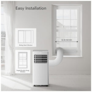 Controle Efetivo do Clima do Ambiente: O ar-condicionado portátil Pulemela de 10.000 BTU não apenas refrigera, mas também aquece espaços de até 41,8 metros quadrados. Com uma faixa de temperatura de 17°C a 30°C, é perfeito tanto para verões quentes quanto invernos frios. Portabilidade Sem Costuras: Construído com plástico ABS fosco durável, a unidade inclui um filtro duplo removível e lavável para proteção contra poeira e pelos de animais. Com rodízios inferiores e alças laterais, este compacto ar-condicionado é fácil de mover entre cômodos, proporcionando conveniência e flexibilidade incomparáveis. Operação Amigável ao Usuário: Equipado com uma variedade de funções poderosas, este ar-condicionado portátil garante operação sem esforço: refrigeração, ventilação, sistema de autovaporização, modo sono, fluxo de ar potente com 2 velocidades, timer de 24 horas, indicador de reservatório cheio e inclui uma função de trava de segurança infantil para evitar acidentes. Kit de Instalação Completo: A instalação do seu ar-condicionado é simples com o kit de janela incluído. Conecte a mangueira na parte traseira da unidade e em seguida acople a mangueira ao kit de ventilação da janela. A placa de vedação ajustável em 2 seções se encaixa em vários tamanhos de janelas, garantindo uma instalação firme e eficiente.