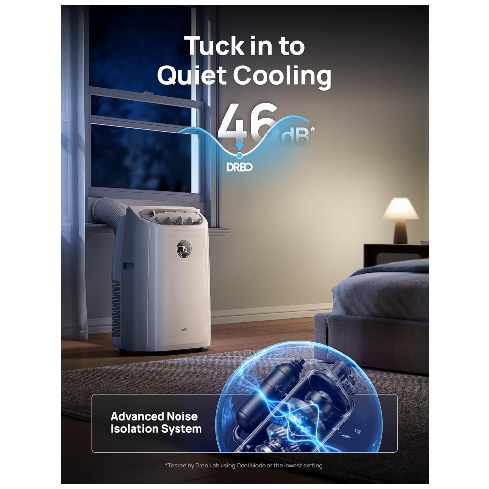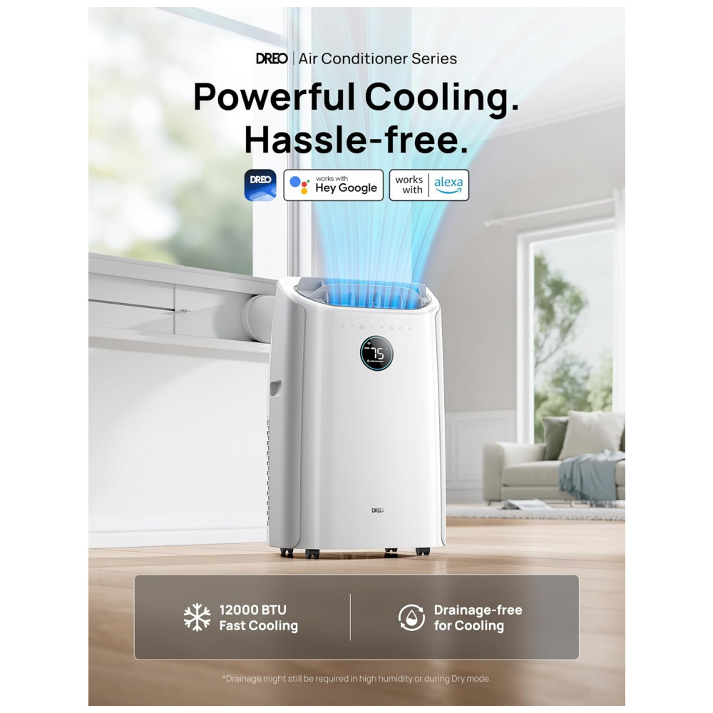 Ar-condicionado Portátil Dreo 12.000 BTU para Quarto com Resfriamento sem Drenagem Silencioso 46dB Controle por Aplicativo de Voz Remoto