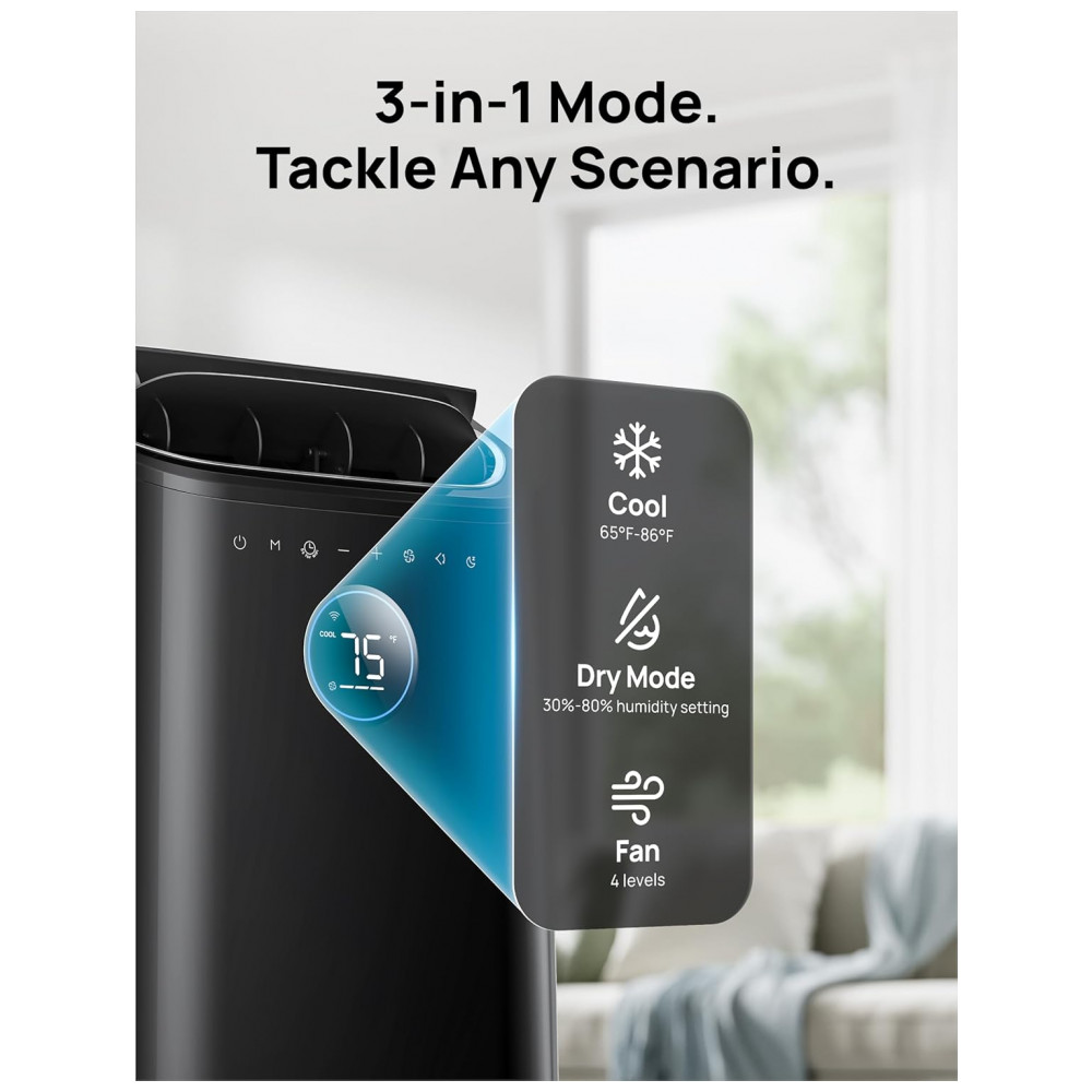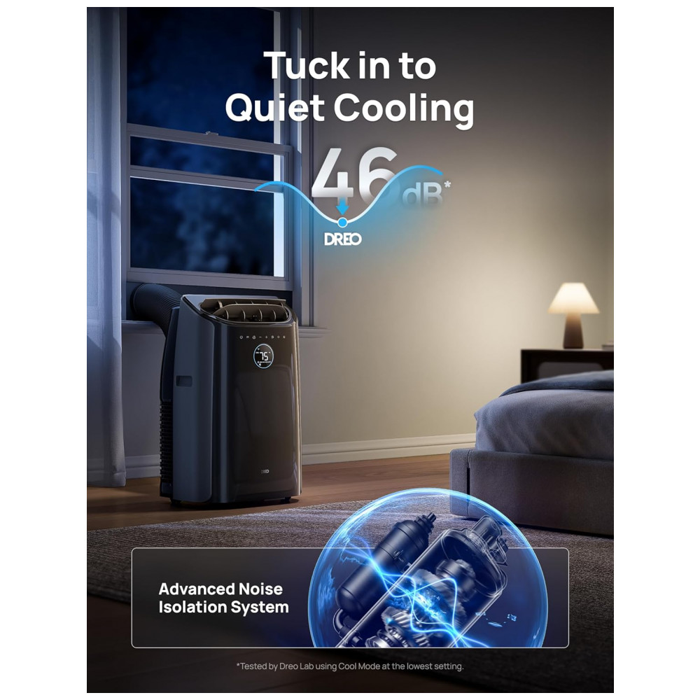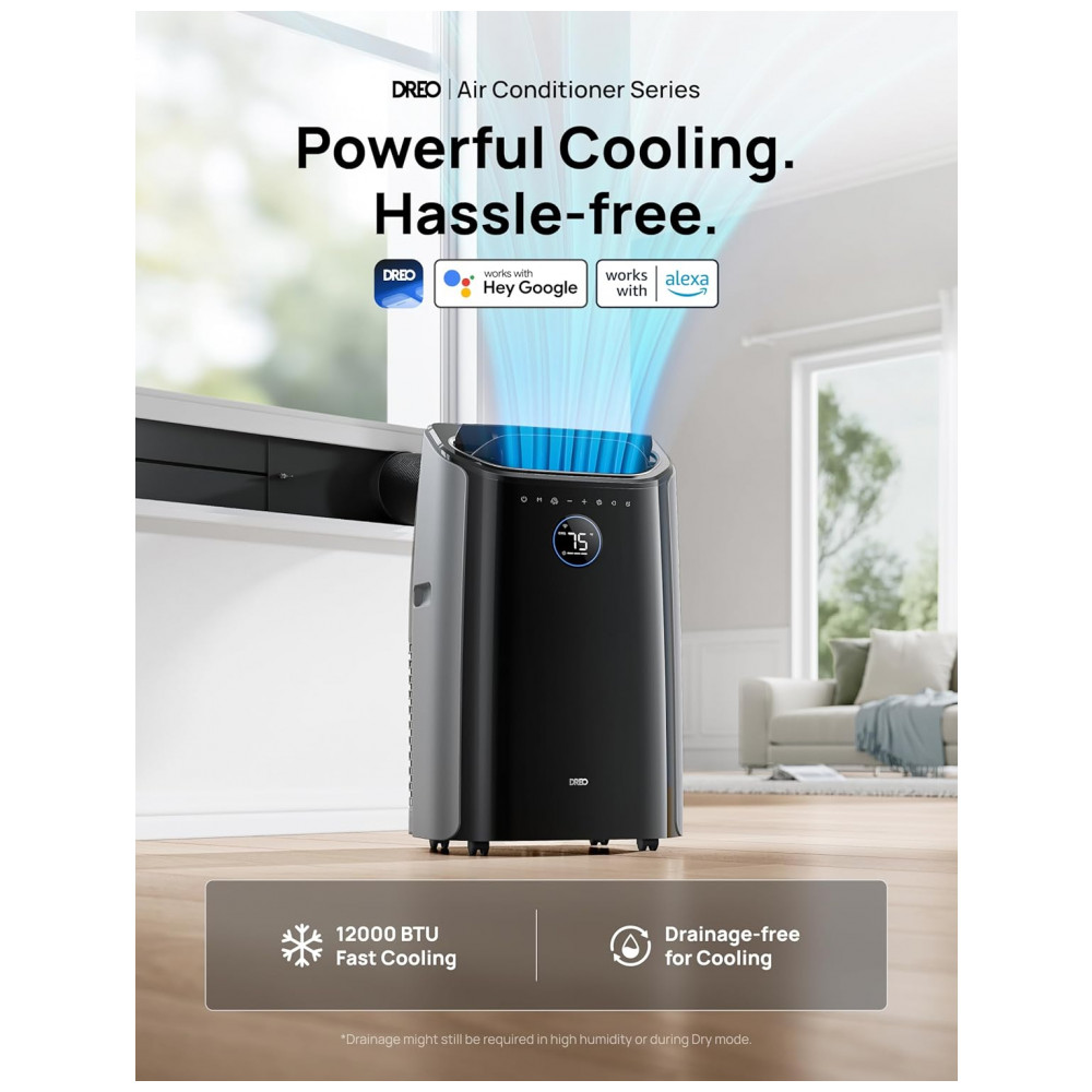 Ar-condicionado Portátil Dreo Unidade de 12.000 BTU para Quarto com Refrigeração sem Drenagem Silencioso 46dB Controle por App por Voz Temporizado