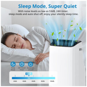 O Ar-condicionado portátil GarveeLife de 14000 BTU oferece uma potência de resfriamento eficiente, ideal para espaços de até 69,68 metros quadrados. Com faixa de temperatura ajustável de 18 a 34 graus Celsius, você pode personalizar sua experiência de resfriamento. Desfrute dos modos de Resfriamento, Ventilador e Desumidificador, garantindo conforto durante todo o ano. O desumidificador de 90 litros por dia remove o excesso de água, criando um ambiente saudável e agradável em cômodos como sala de estar, quarto, cozinha, escritório, entre outros. Com display digital LED frontal e controle remoto, você pode ajustar a temperatura sem precisar sair da cama ou do sofá. Operando silenciosamente a 48dB e com modo de sono dedicado, este ar-condicionado oferece tranquilidade. O temporizador de 24 horas permite programar o ligar e desligar para chegar em casa ou dormir com o ambiente fresco. Fácil de instalar e transportar, compacto, com 4 rodas e 2 alças. Inclui controle remoto, mangueira de exaustão e kit de instalação para janelas duplas ou de correr.
