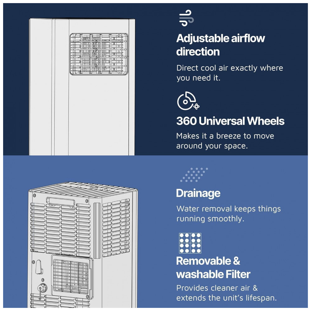 Desfrute de um ambiente fresco e confortável durante o verão com o Ar-condicionado Portátil LifeMaster 3 em 1, que também atua como desumidificador e ventilador. Com controle remoto digital, é fácil alternar entre as funções. Com 14.000 BTU, este compacto aparelho possui ajuste de velocidade do ventilador e modo silencioso para um descanso tranquilo. Fácil de instalar e manter, conta com filtro removível e kit de exaustão. Ideal para ambientes de até 51m², como dormitórios, escritórios e salas de estar.