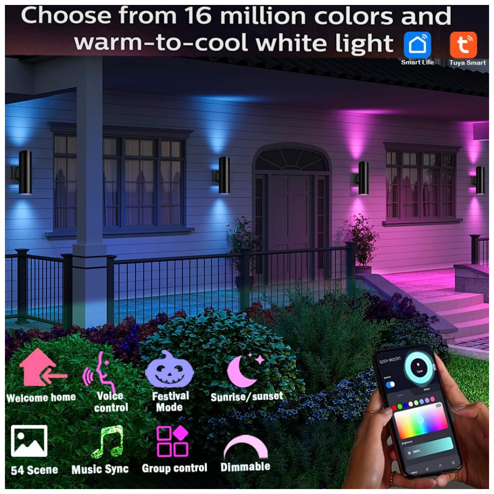 MULTI CORES E BRANCO QUENTE Branco quente puro cores RGB, ilumine sua vida com milhões de lâmpadas que mudam de cor. Adicione um visual atraente ao caminho do pátio do jardim e varanda com seus belos efeitos de iluminação. A luz de parede up down é ideal para uso no exterior e no interior devido à sua aparência elegante única que os torna utilizáveis em casas tradicionais e Esta luz de acabamento de alumínio preto fosco de fora para baixo usa chips de led de alta qualidade, luzes incandescentes equivalentes de 100W ultra brilhantes brancas puras de 10W para brilhar seu brilho de 1000lm ao longo de 50.000 horas de vida útil. Alta saída de lúmen.