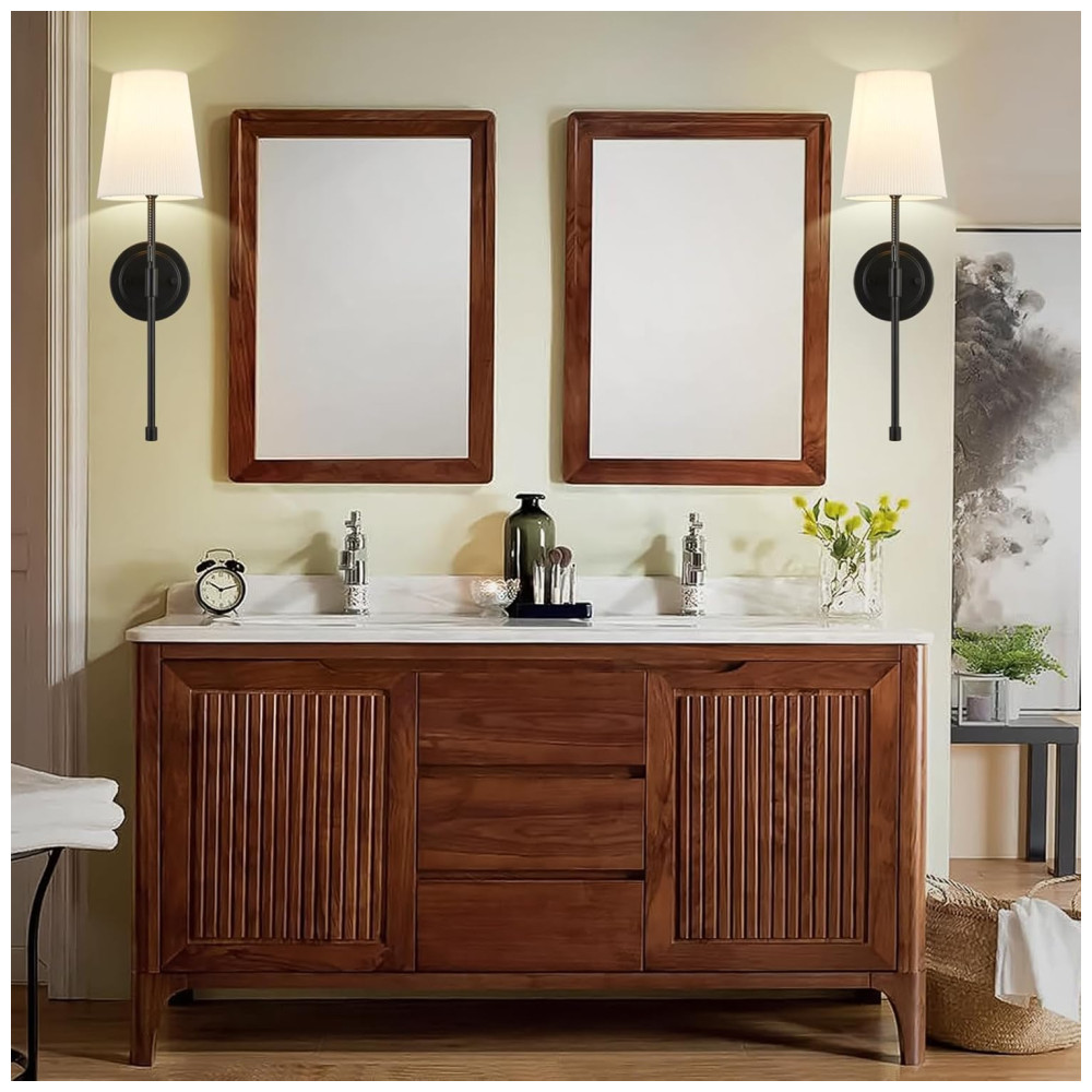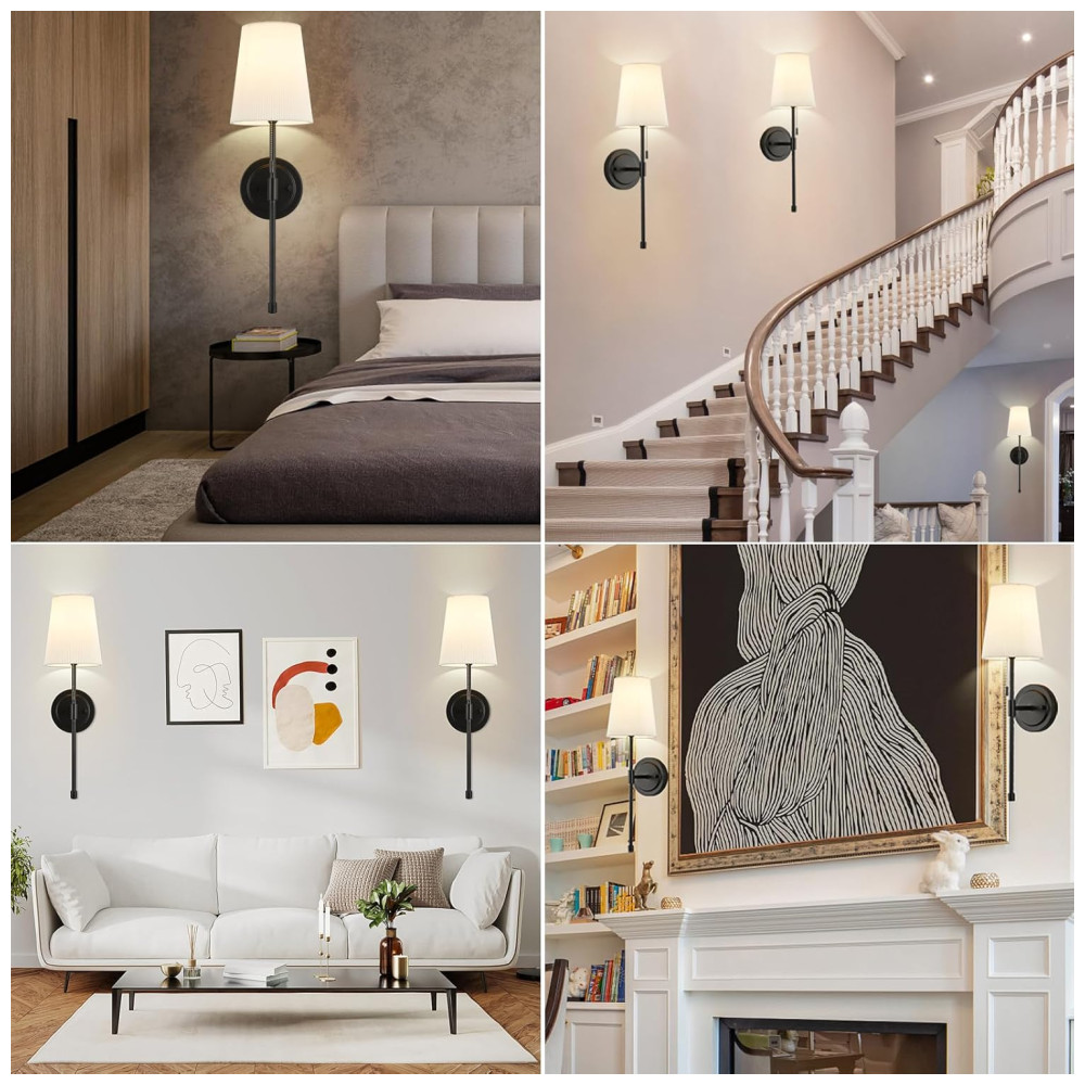 Este conjunto de 2 luminárias de parede é construído com um design de metal durável e elegante, que se adapta perfeitamente a casas tradicionais e modernas. As luminárias são equipadas com cúpulas de tecido branco dobrável, permitindo que a lâmpada emita iluminação brilhante e crie uma atmosfera maravilhosa para o seu espaço.