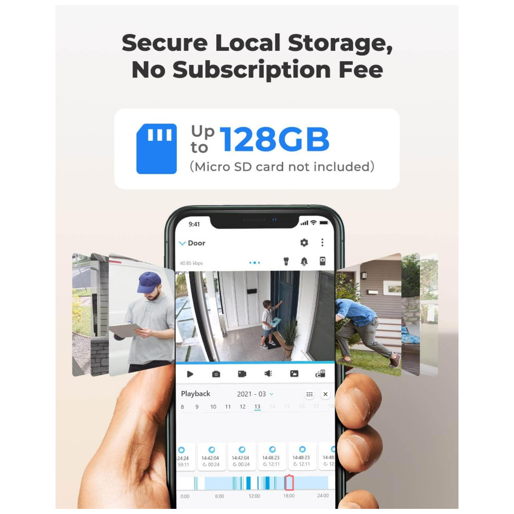 2.4 Ghz WiFi, acesso remoto fácil Instruções de voz abrangentes estão disponíveis para configurar a câmera de vigilância doméstica. Visualização e reprodução ao vivo no iOS, Android, Windows ou Mac com aplicativo ou cliente Reolink grátis. Sem taxas de inscrição