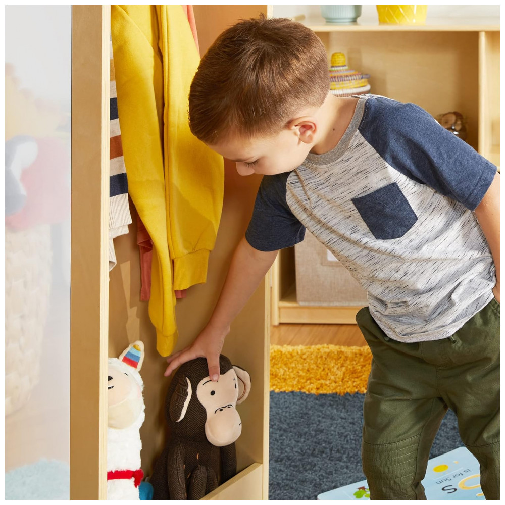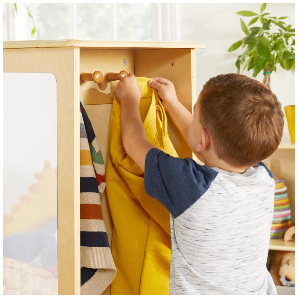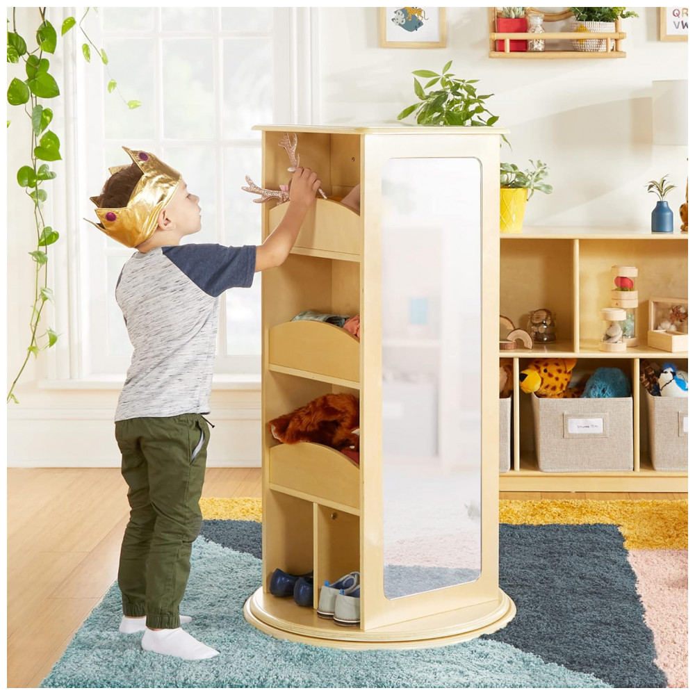 Armário infantil giratório para fantasias Guidecraft Rotating Dress Up Storage Natural com prateleiras cabideiro e espelhos