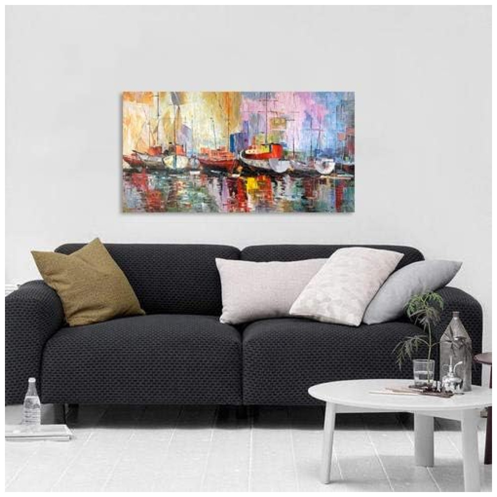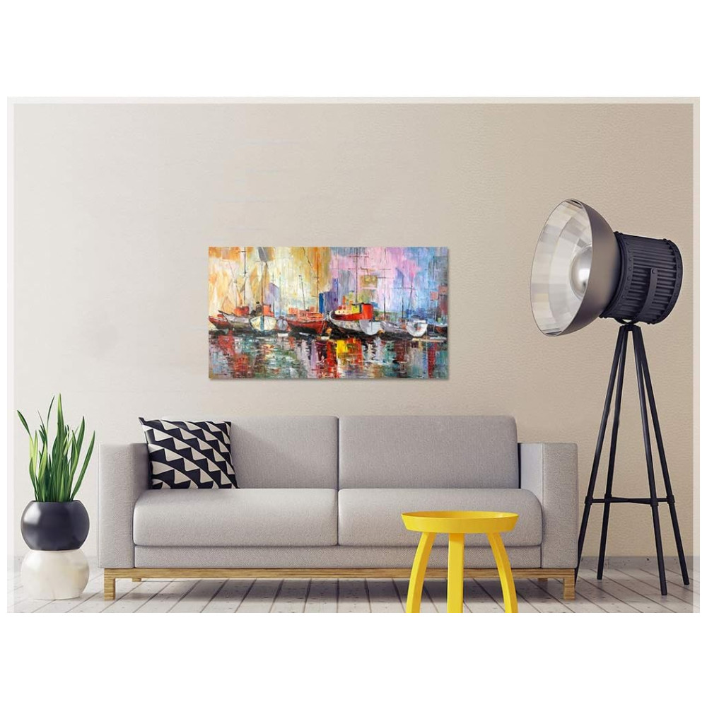 Art Quadro Decorativo Veleiro Colorido Pintado à Mão 60 x BOUVY Amarelo