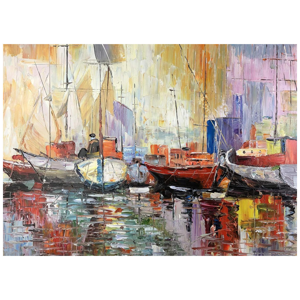 Declaração do artista Uma pintura acrílica de veleiros ao pôr do sol sobre tela, feita com cores vibrantes.100 Pincel , Faca pintada à mão por nossos artistas.