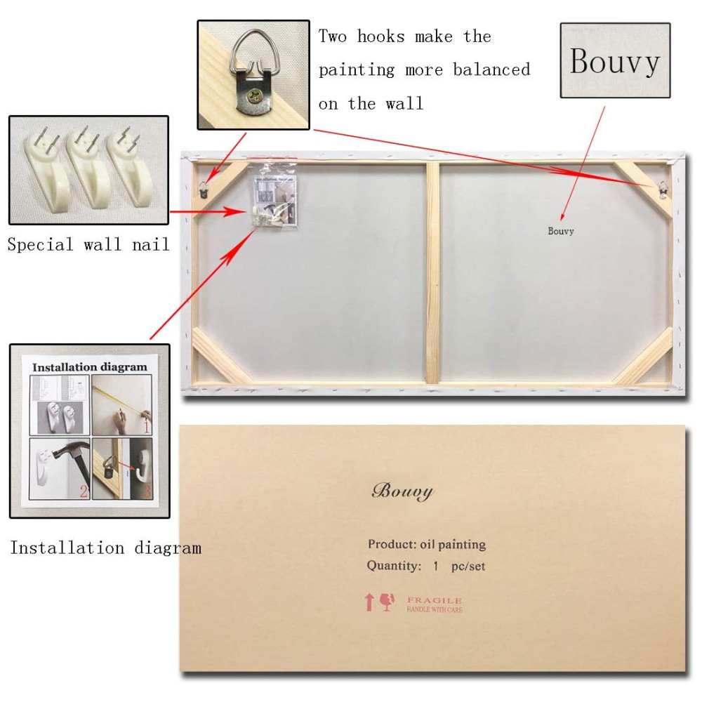 Conveniente Todas as nossas pinturas são embrulhadas em galeria e esticadas sobre uma moldura de madeira. Pronto para pendurar com ganchos giratórios. Muito fácil de pendurar.