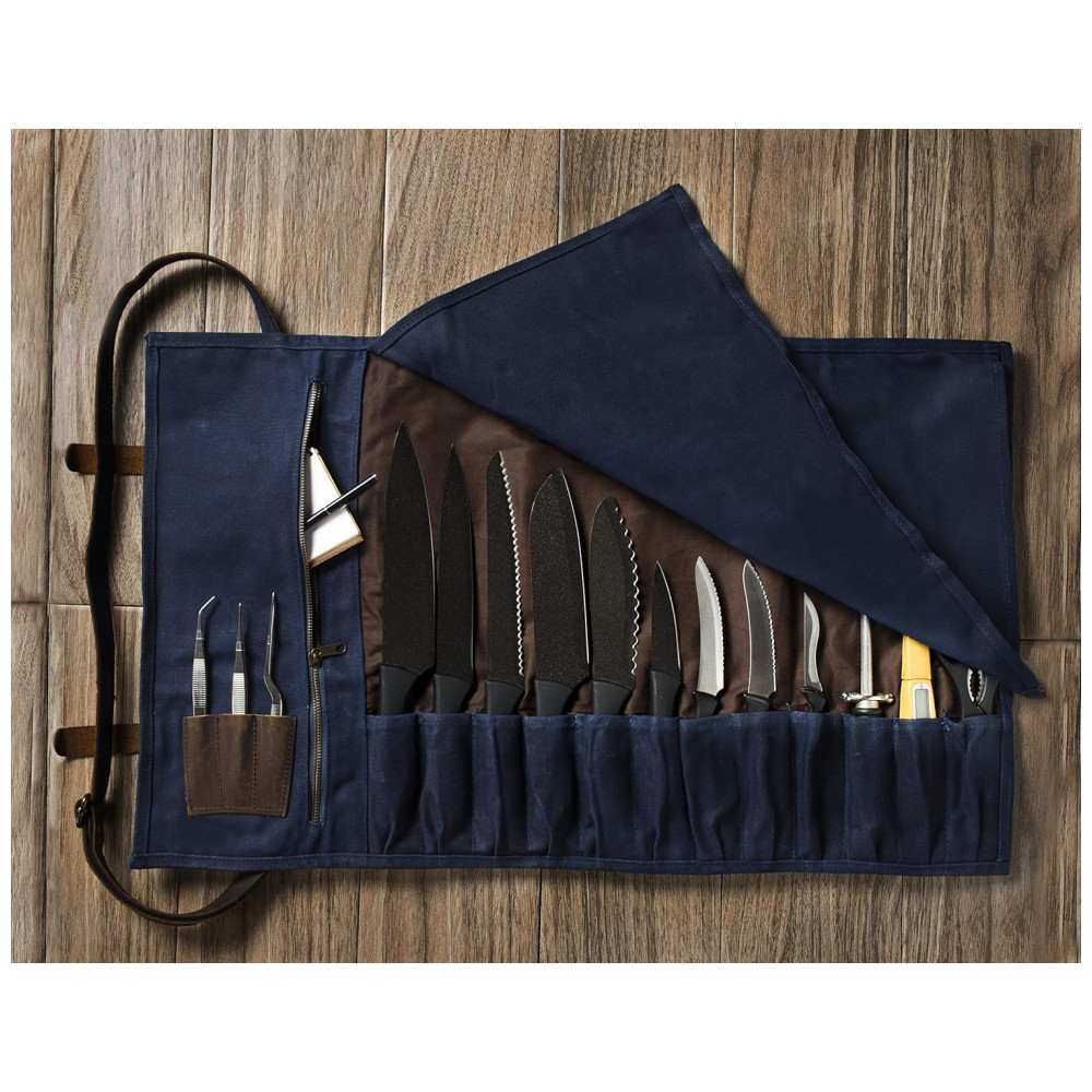Asaya Estojo Bolsa Portátil para Facas com 15 Slots Facas não Incluídas Azul