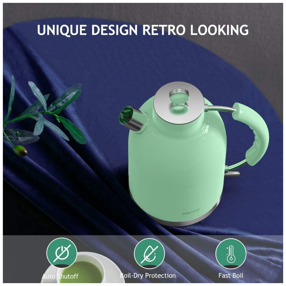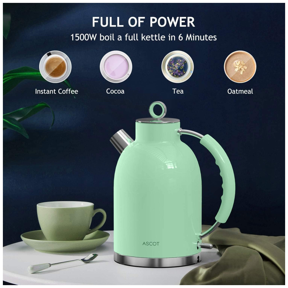 ASCOT Chaleira Elétrica Aço Inoxidável 1.7L Aço Inoxidável Verde Claro 110V