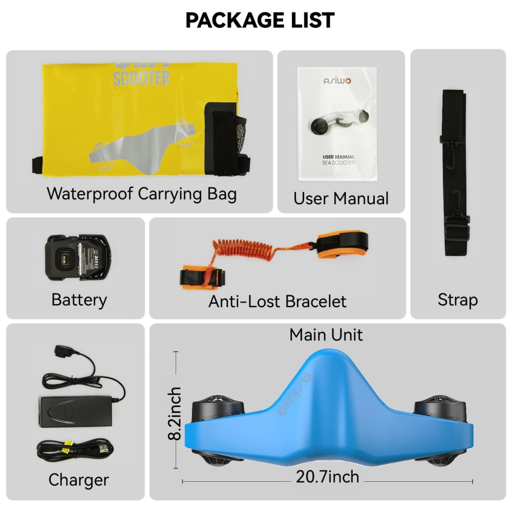Asiwo Sea Scooter Dual Motors – Scooter Subaquática Inovador para Crianças e Adultos Resistente à Água a 40m para Mergulho e Aventuras Aquáticas