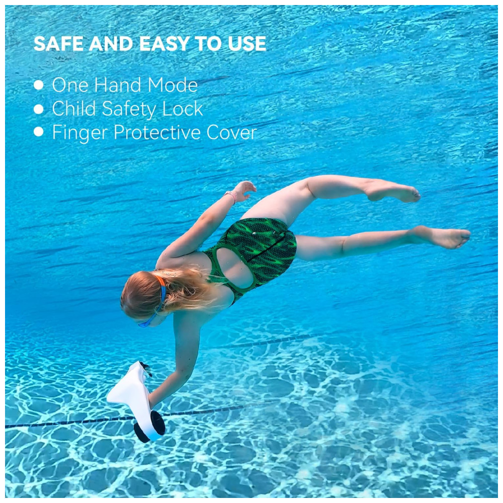 O Sea Scooter da Asiwo possui um design inovador que evita afundamentos, com travamento de segurança infantil e rede protetora para evitar acidentes. Com peso total de 3,5 kg, é fácil de transportar em viagens e pode ser levado no avião. Equipado com dois motores potentes de 600W que geram empuxo para explorar o mundo subaquático a 40m de profundidade. Funciona com bateria de íon-lítio recarregável, proporcionando 35 minutos de uso contínuo após carga de 2-3 horas. Apresenta controle de aceleração progressiva de 3 velocidades para movimentos precisos. Design com suporte para câmera de ação, compatível com a maioria das câmeras esportivas. Modo de uso com uma mão que permite interagir com a vida marinha enquanto equilibra o scooter. Desfrute de mergulhos incríveis com o Sea Scooter da Asiwo!
