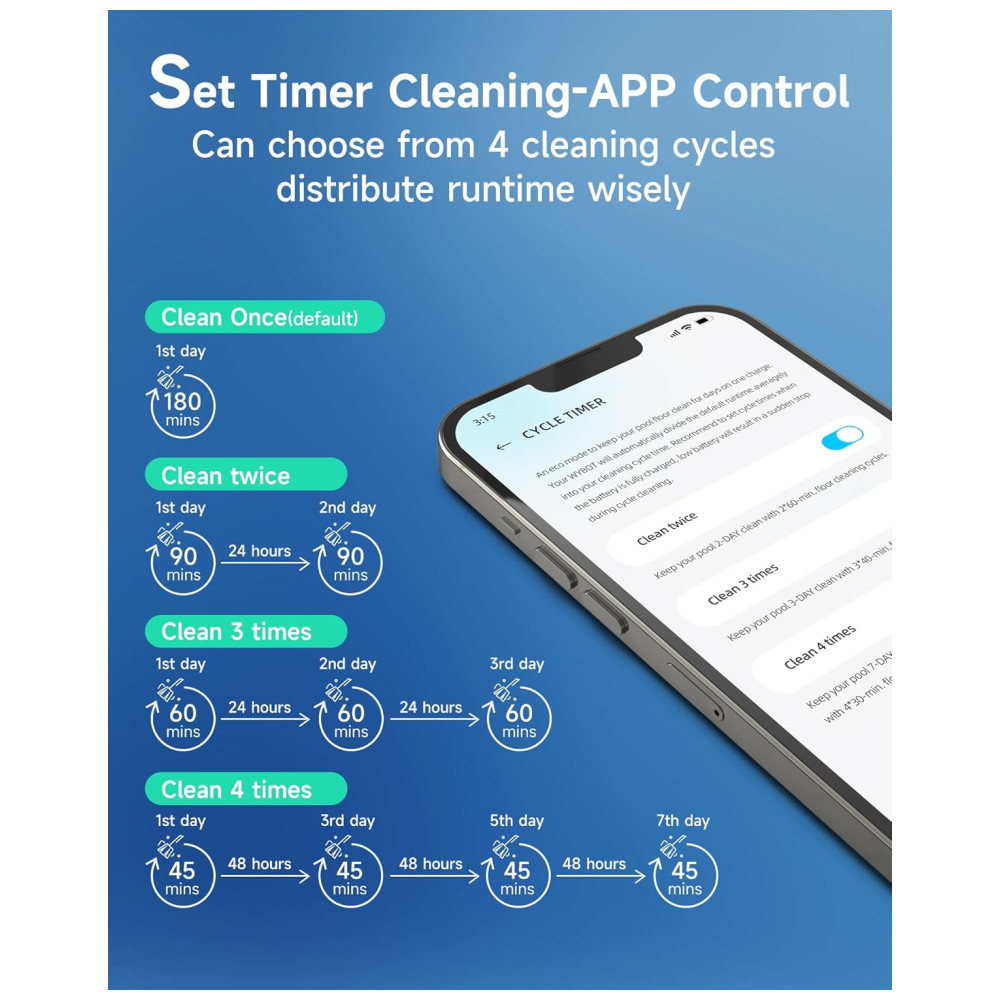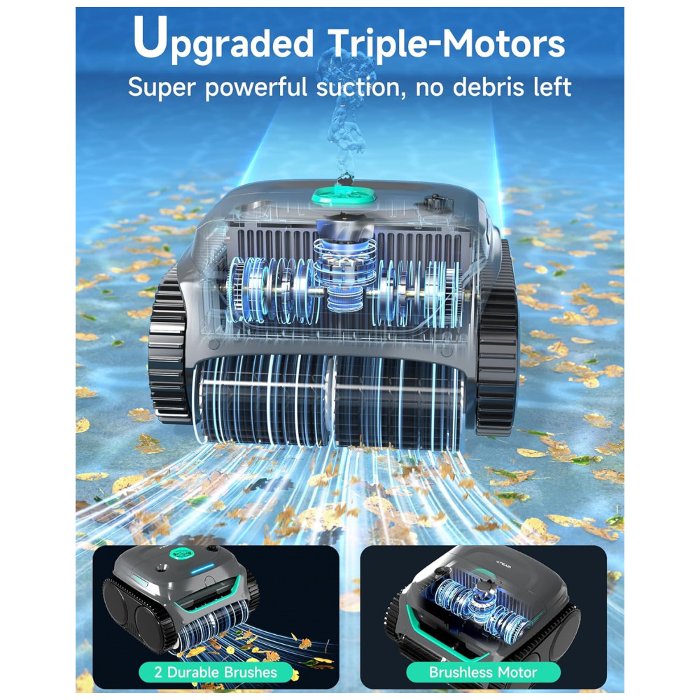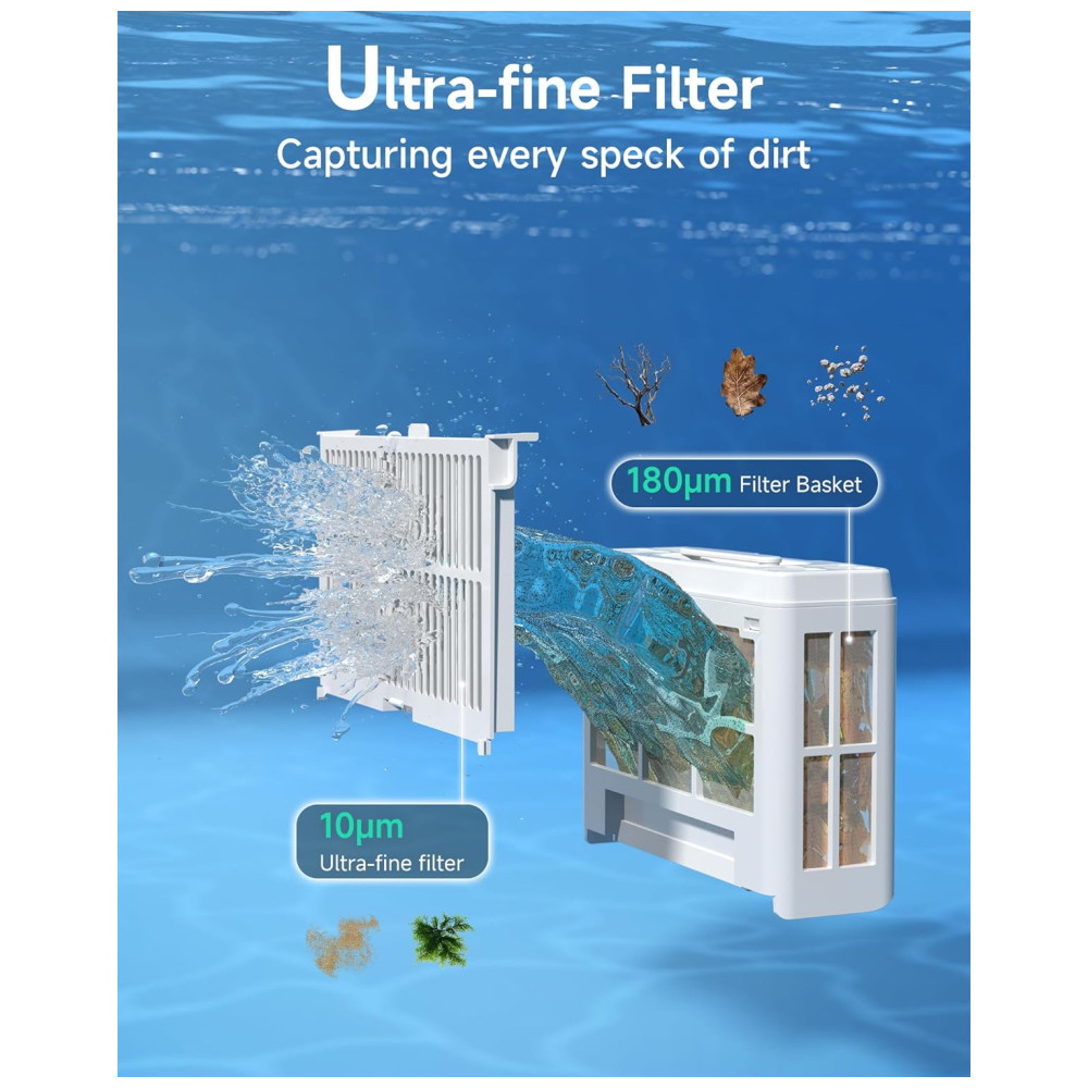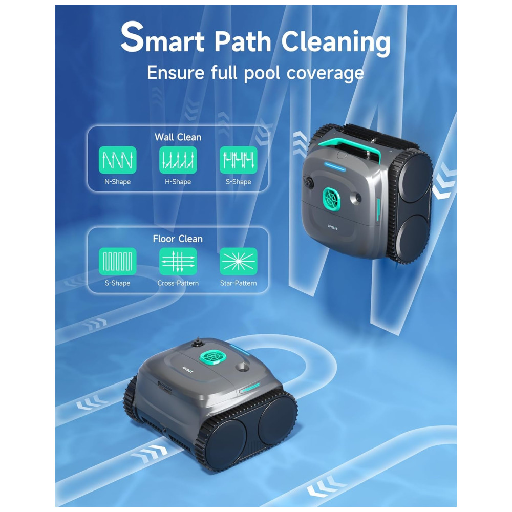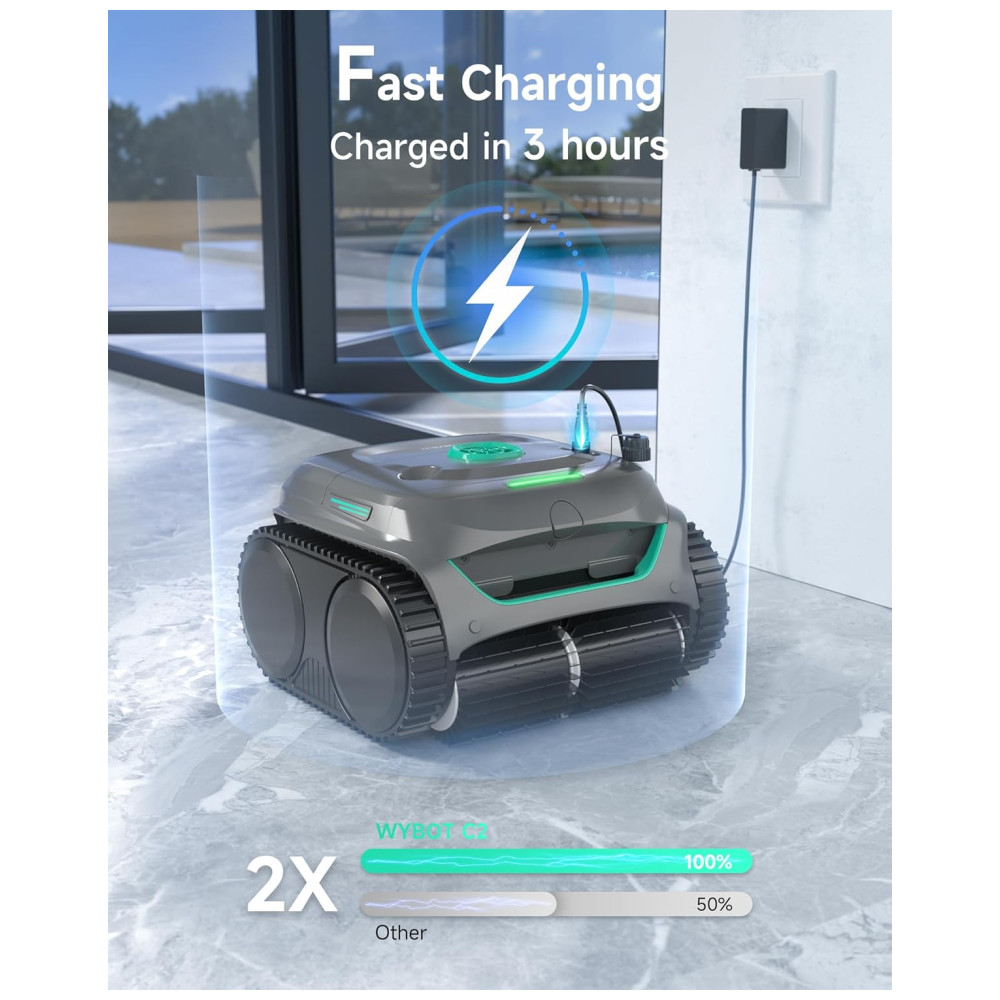 O Aspirador de Piscina WYBOT C2 sem fio oferece limpeza completa, cobrindo pisos, paredes e linha d’água de piscinas subterrâneas ou elevadas de até 200m², sendo seguro em azulejos, concreto, vinil e fibra de vidro. Desfrute de potente sucção com dois motores de escova e uma bomba sem escova de até 10.000l/h para esfregar e recolher detritos com eficácia. A filtração ultrafina de duas camadas captura desde folhas até poeira fina. Com autonomia de até 180 minutos, o WYBOT C2 possui 7 modos de limpeza, 6 trajetos e controle via aplicativo para agendar até 4 limpezas por semana. Deixe sua piscina impecável com o Wybot C2, o futuro da limpeza de piscinas!