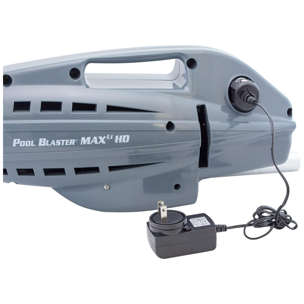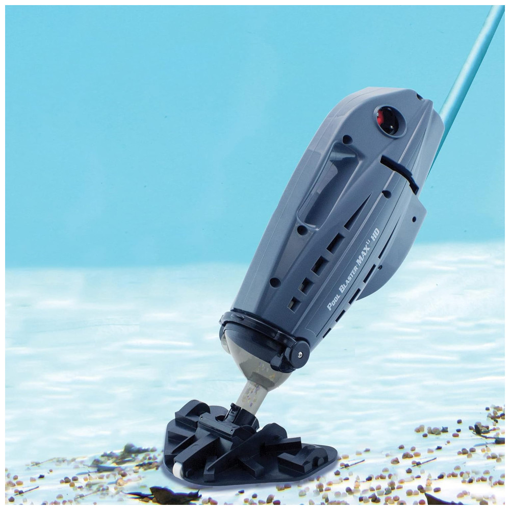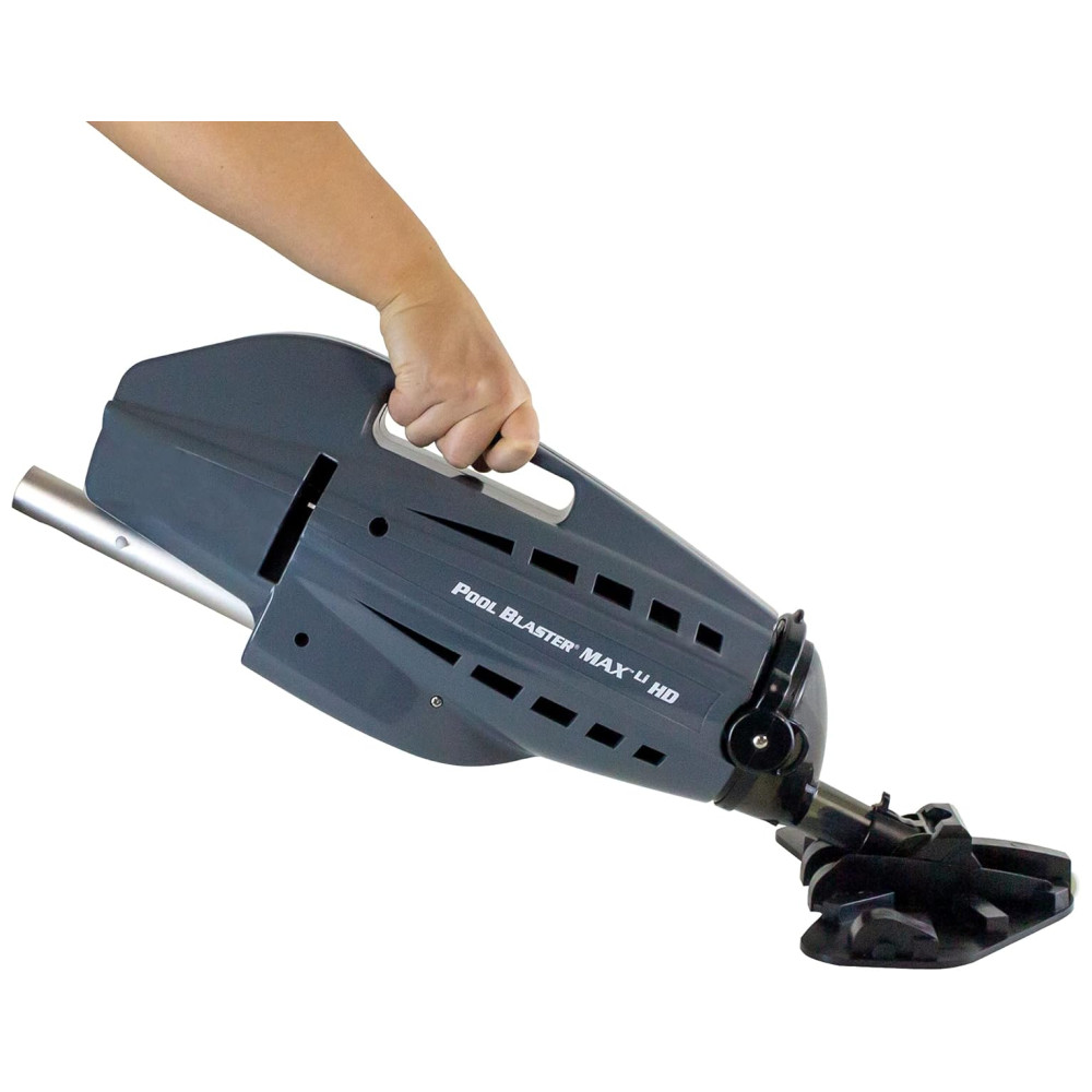 O Pool Blaster Max HD possui 40 câmaras de captura de detritos maiores do que o Pool Blaster Max e forte sucção para uma variedade de detritos, bolotas, galhos, folhas, sujeira e areia. Alimentado por bateria de íon de lítio, este limpador foi projetado para funcionar por até 1 hora e é operado por um único botão.