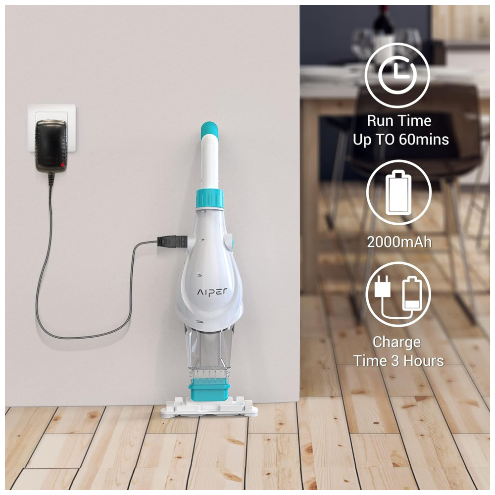Aspirador de Piscina sem Fio Recarregável com Autonomia da Bateria de 1H Limpeza Profunda e Sucção Forte 110V AIPER P1111 Branco e Azul