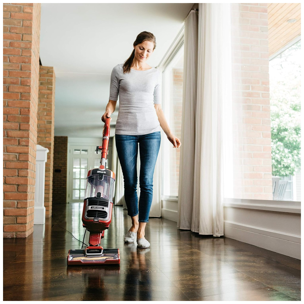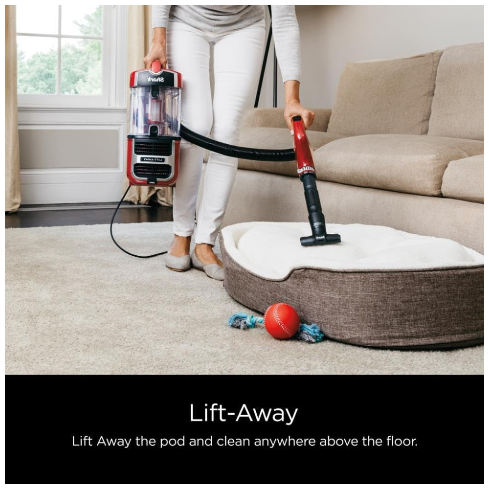 O aspirador Shark com rolo de escova autolimpante oferece uma coleta poderosa de pelos de animais de estimação sem enrolamento de cabelo. Ele pode ser utilizado como aspirador vertical para uma limpeza eficaz em pisos e carpetes. Além disso, para maior portabilidade, basta desconectar o pod para entrar no modo Lift-Away e limpar facilmente áreas acima do piso, como móveis e escadas.