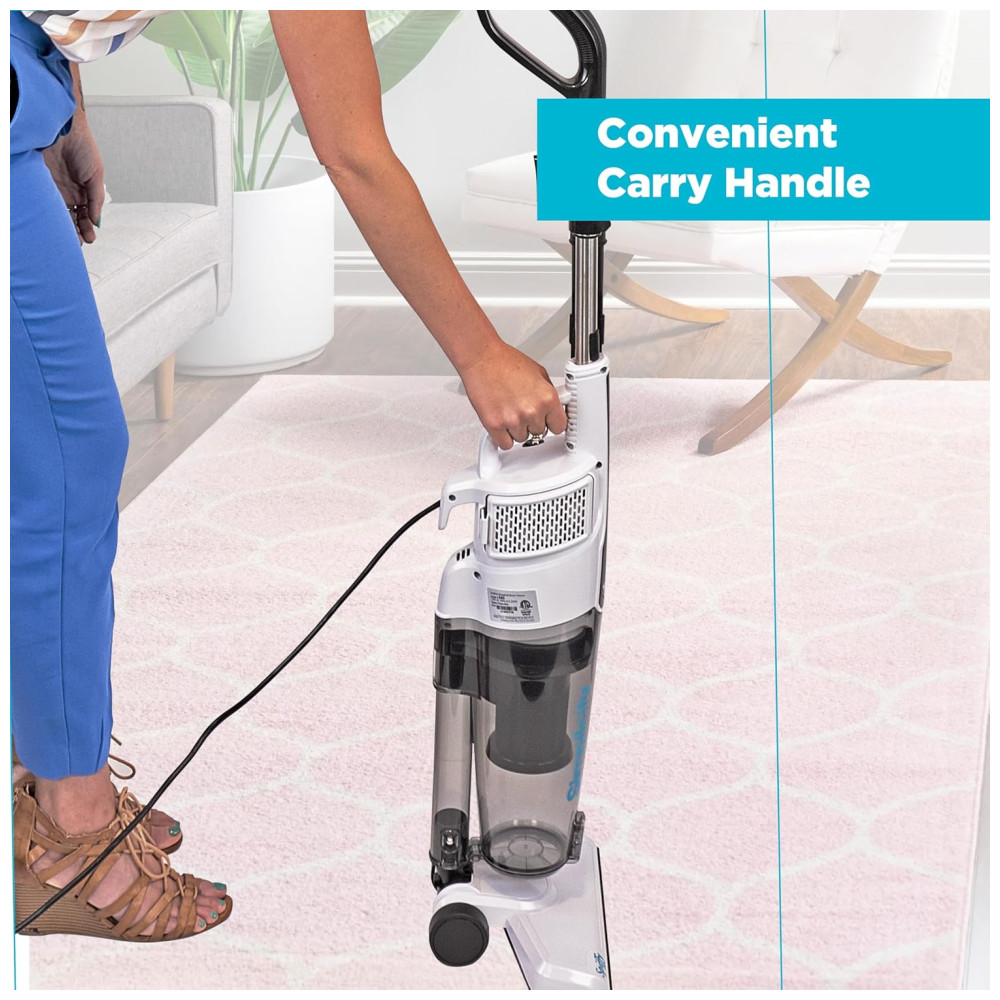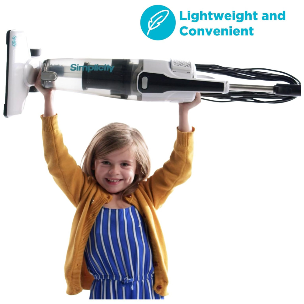 O aspirador Simplicity Spiffy S60 é uma opção conveniente e portátil para limpeza doméstica. Transporte facilmente este aspirador fino e leve para onde precisar, graças à alça de transporte antiderrapante. Com um cabo longo de 30 pés, você pode limpar por mais tempo sem precisar trocar de tomadas ou se preocupar com a carga da bateria.