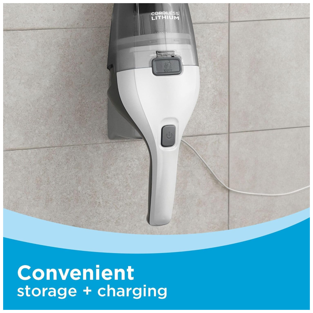 O carregador montável na parede incluído permite carregar o aspirador e armazená-lo de forma prática em um único passo, mantendo-o sempre pronto para uso.