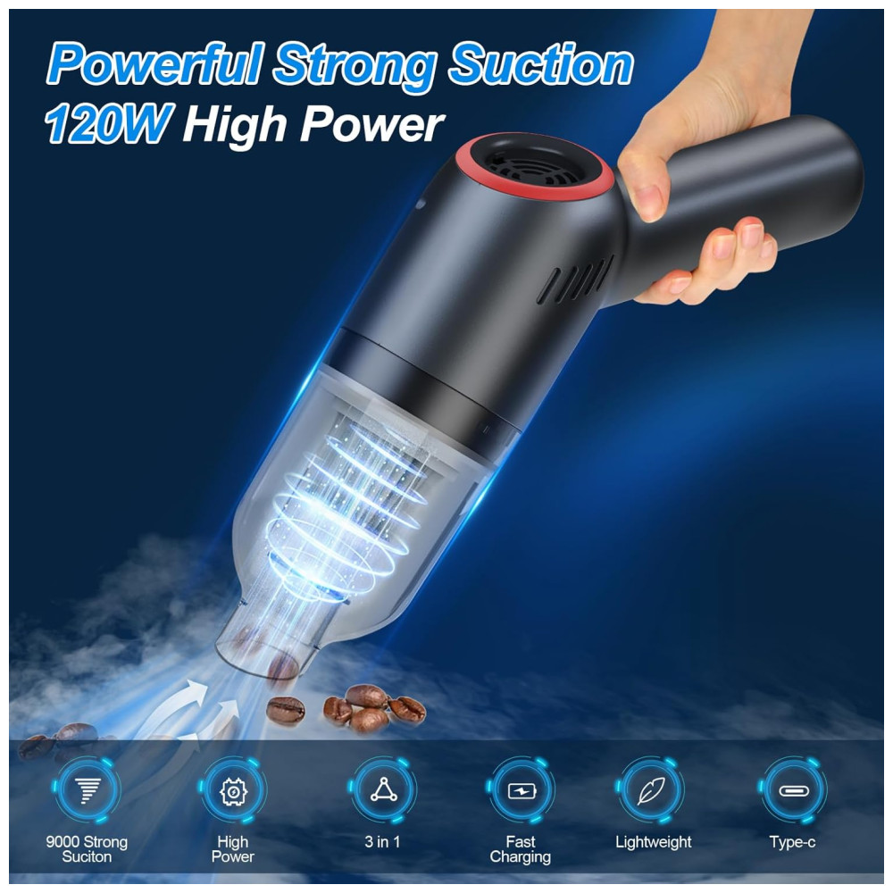 Aspirador de Pó Automotivo Portátil e Recarregável 2000mAh com Luz LED Potente 9000PA SUNCANDXY Cinza