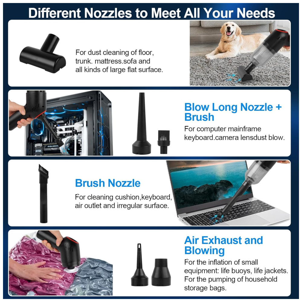AMPLA APLICAÇÃO Este mini aspirador de pó úmido e seco pode ser em vários lugares que precisam ser limpos. Você pode usá lo para limpar as lacunas no carro, sofá, tapetes, mesa, teclados e estantes de livros, etc