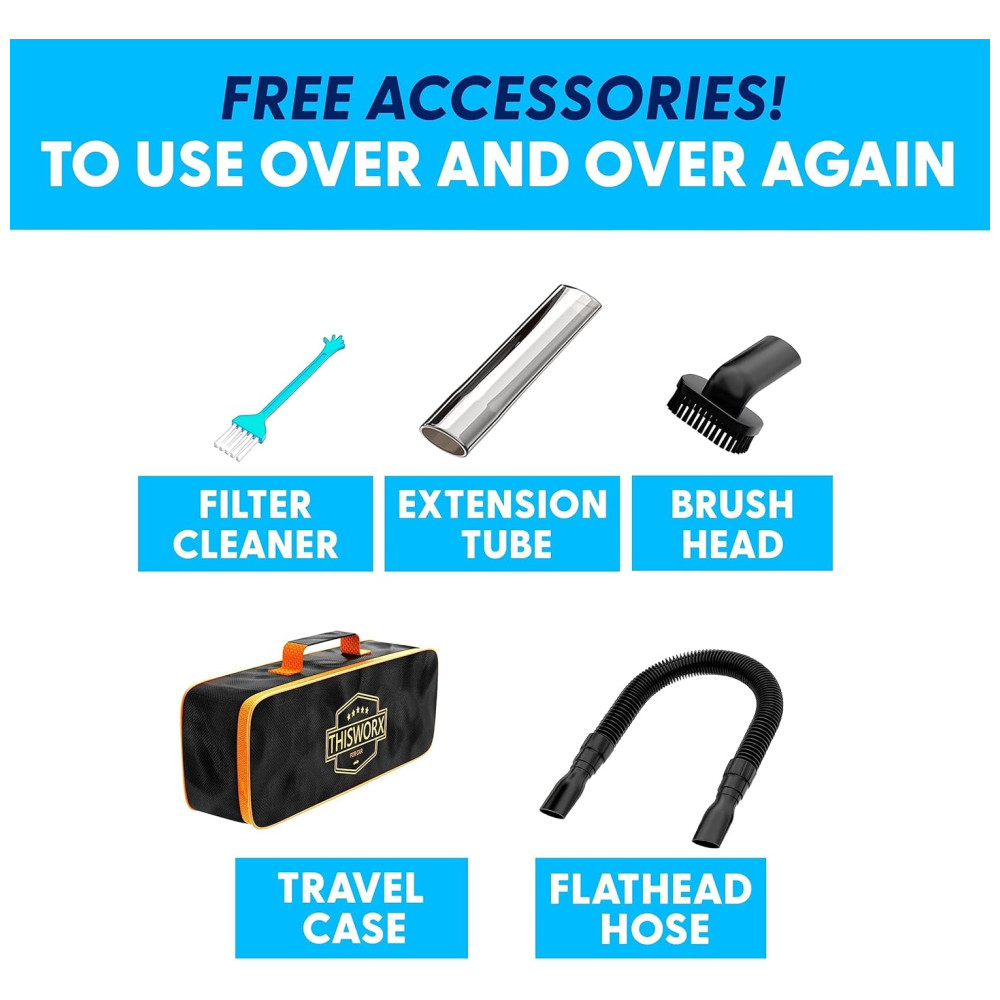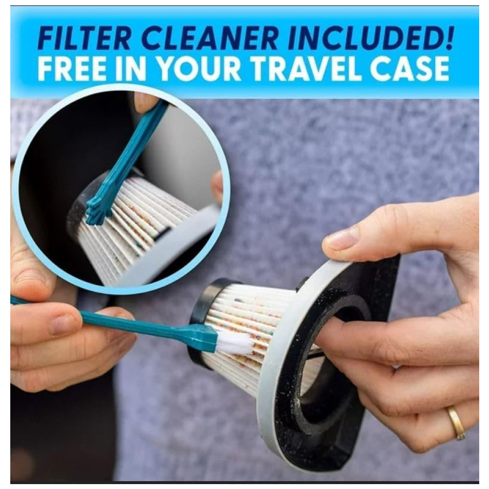 UM CONJUNTO DE LIMPEZA FEITO PARA COMPARTILHAR RIDE Qualquer motorista vai adorar este aspirador de mão e todos os seus acessórios 3 bicos multifuncionais diferentes, uma bolsa de transporte para fácil zenamento e uma escova de limpeza de filtro
