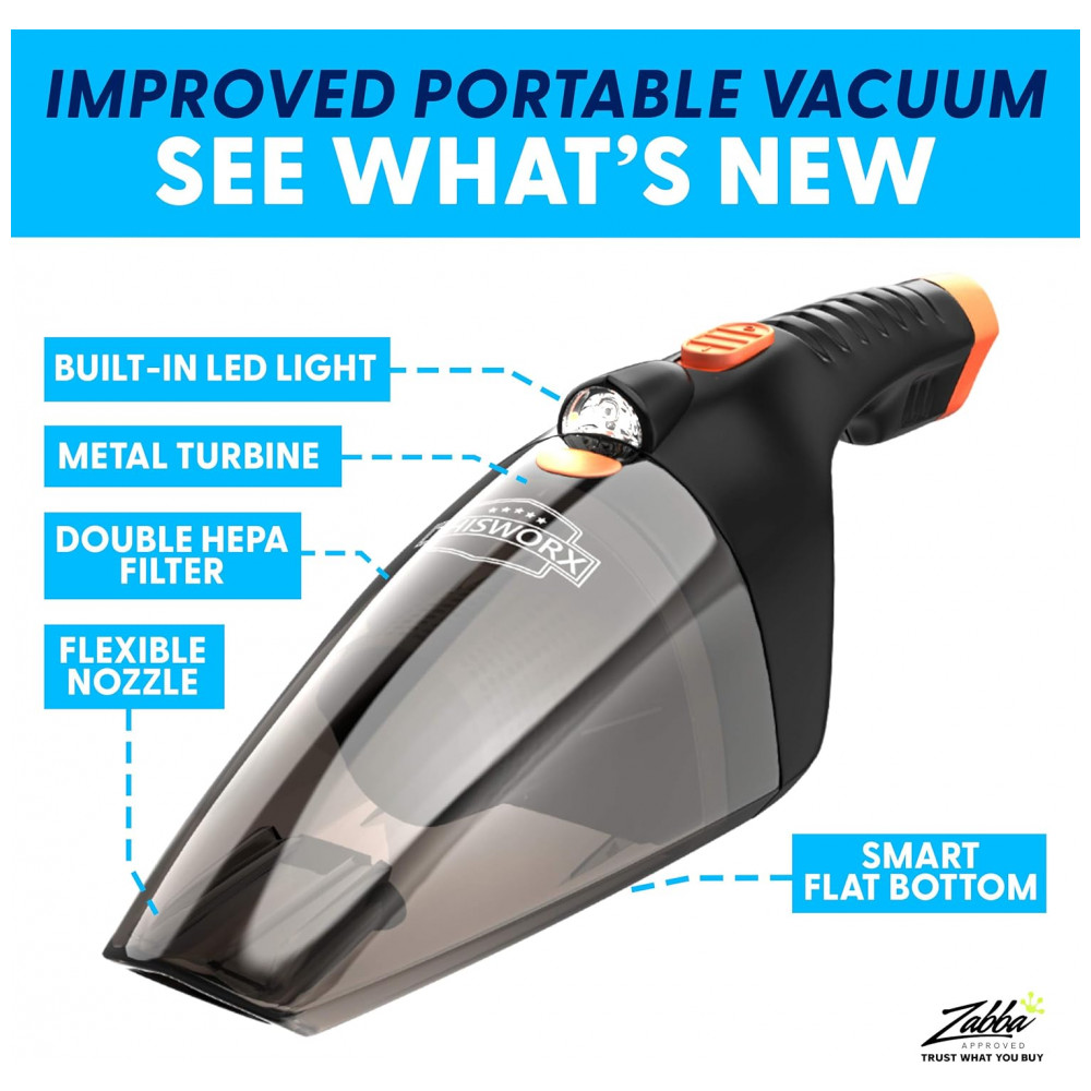 O ALTO PODER FINAL Alcançamos um alto padrão em limpeza de carros com nosso aspirador de pó portátil aprimorado. As atualizações incluem potência de sucção de 110 W e 9,s, um design elegante com luz LED integrada e um filtro HEPA duplo lavável