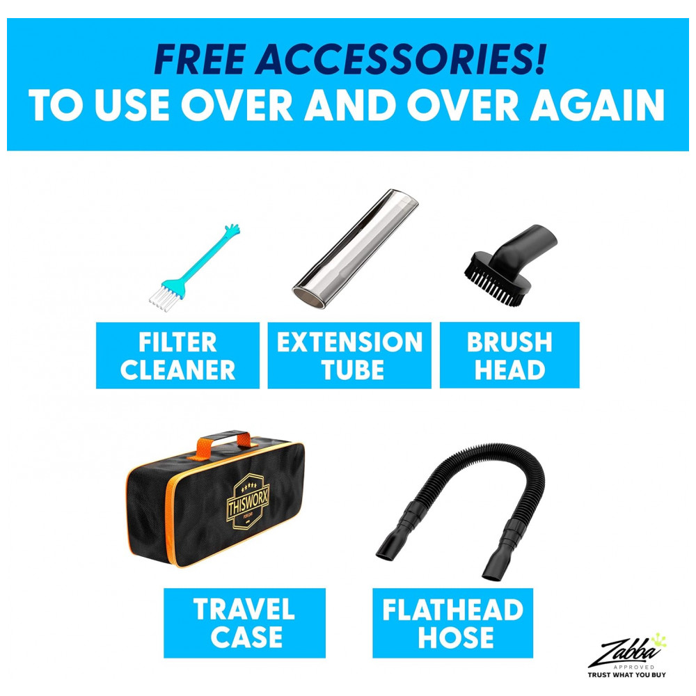UM CONJUNTO DE LIMPEZA FEITO PARA COMPARTILHAR RIDE Qualquer motorista vai adorar este aspirador de mão e todos os seus acessórios 3 bicos multifuncionais diferentes, uma bolsa de transporte para fácil zenamento e uma escova para limpeza de filtros