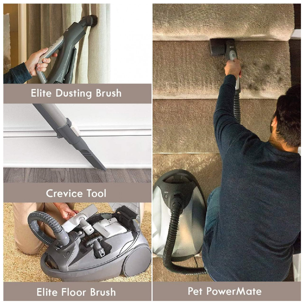 Componentes Inclusos Canister principal, filtro HEPA, bico Pet PowerMate motorizado, bico Ultra Plush, haste telescópica de alumínio, 3 ferramentas de limpeza (fenda, escova para estofados, escova para poeira)
