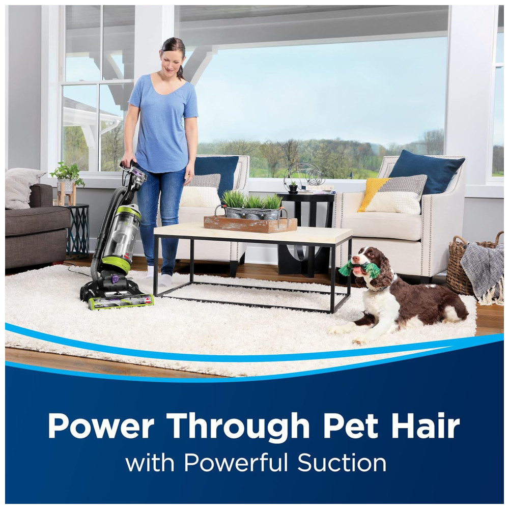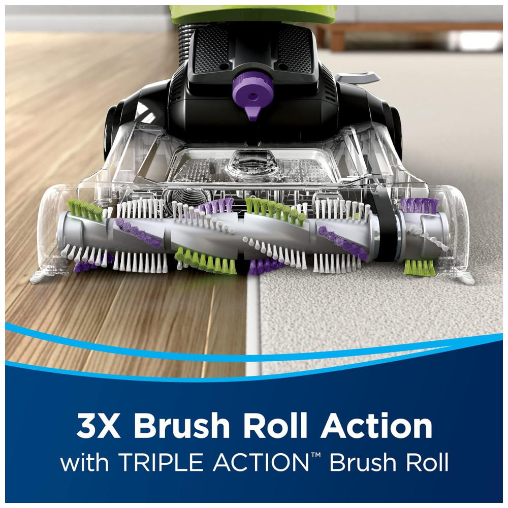 O aspirador vertical BISSELL® CleanView® Swivel Pet oferece um desempenho excelente, como você esperaria de uma empresa especializada em cuidados com pisos, tudo por um ótimo preço. Ele vem com ferramentas e recursos especializados para animais de estimação, sendo ideal para lares com animais. O rolo de escova TRIPLE ACTION™ levanta, solta e remove pelos de animais de estimação incrustados, enquanto suas cerdas suaves em pisos duros removem detritos finos e os mantêm contidos com a tecnologia Scatter-Free.
