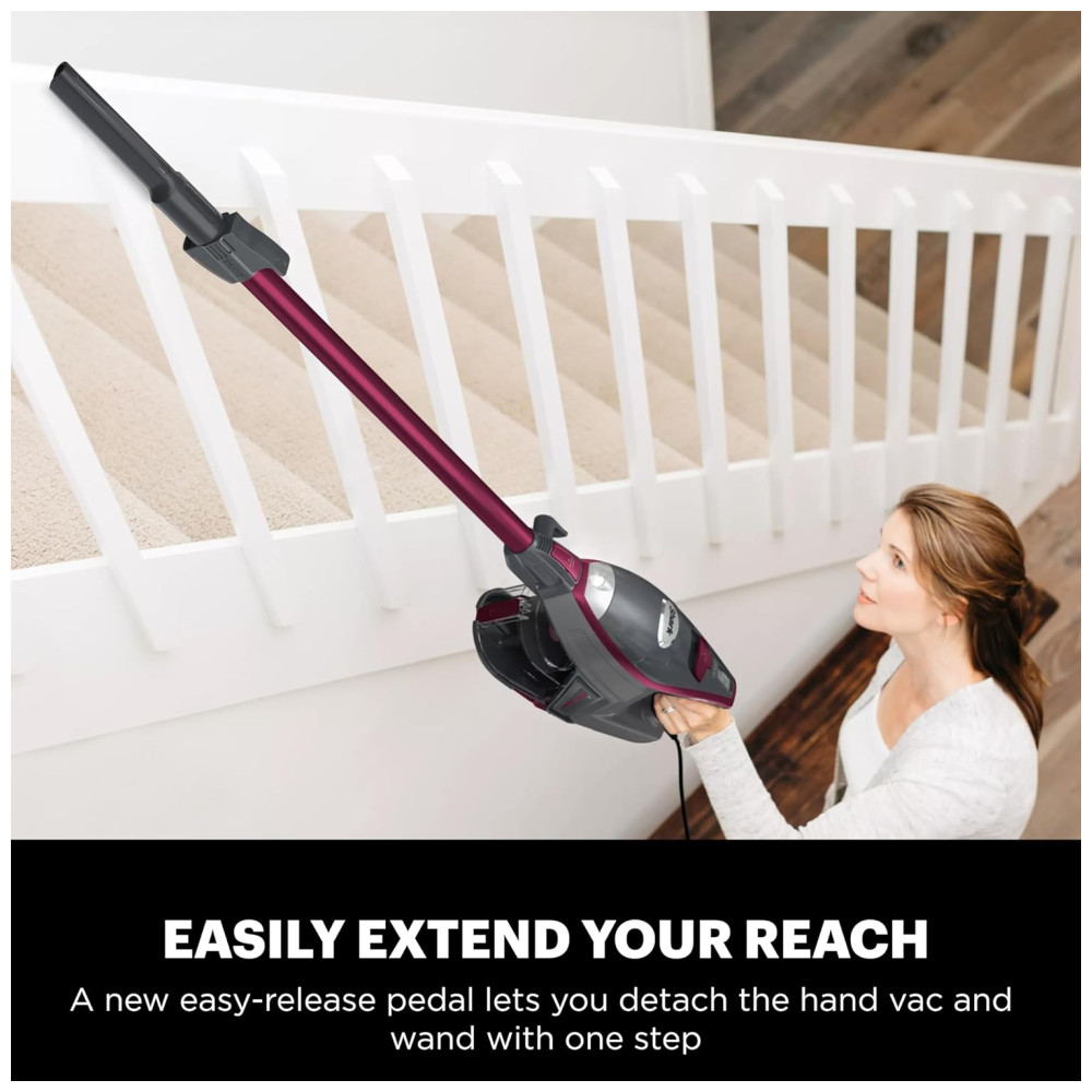 Com um copo de poeira XL com capacidade de 0,68 litros, você desfrutará de limpeza prolongada sem interrupções, enquanto o pedal de liberação fácil permite desconectar a haste do bocal com um simples toque.