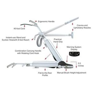 Outras características incluem excelente filtragem, um saco gigante de 5,3 litros, um cabo extra longo de 12 metros, rodas protetoras revestidas de borracha e um perfil de limpeza horizontal baixo de 12 cm que permite alcançar áreas sob camas e móveis. Além disso, possuem um sistema de remoção de rolo de escova sem ferramentas para substituição ou limpeza das cerdas.