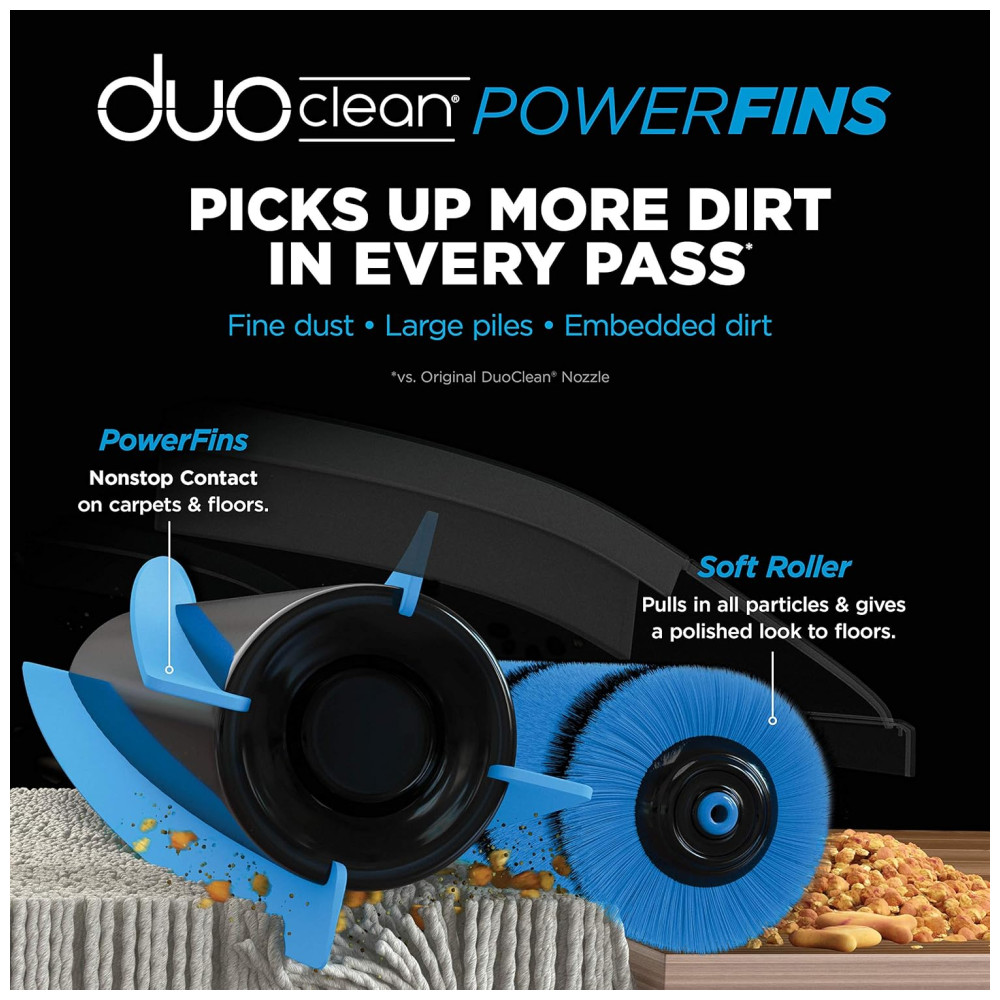 DUOCLEAN POWERFINS: Este sistema inovador une um rolo de escova PowerFins e um rolo macio, garantindo contato constante com a superfície para uma limpeza profunda e eficaz em todos os tipos de piso, capturando mais sujeira a cada passagem.