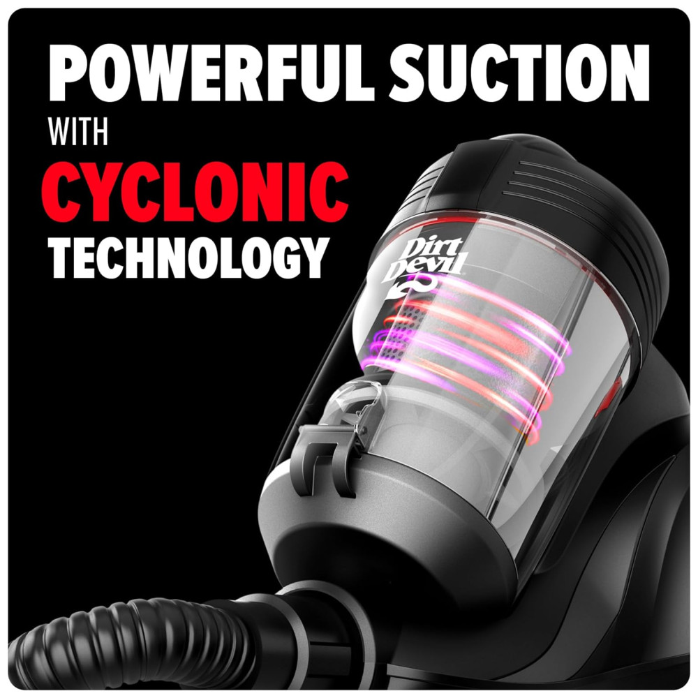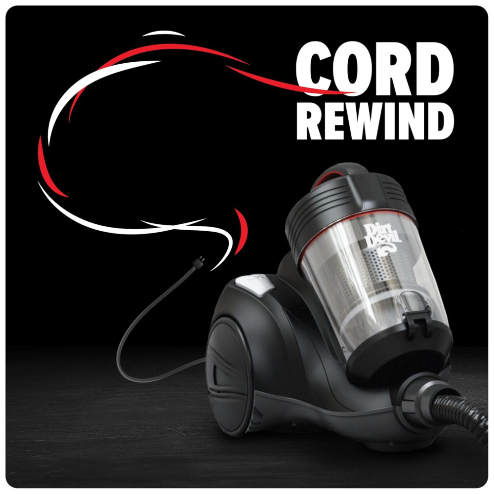Aspirador de Pó com Fio sem Saco com Rebobinamento de Cabo e Alta Sucção para Carpetes e Pisos Duros 110V Dirt Devil Preto