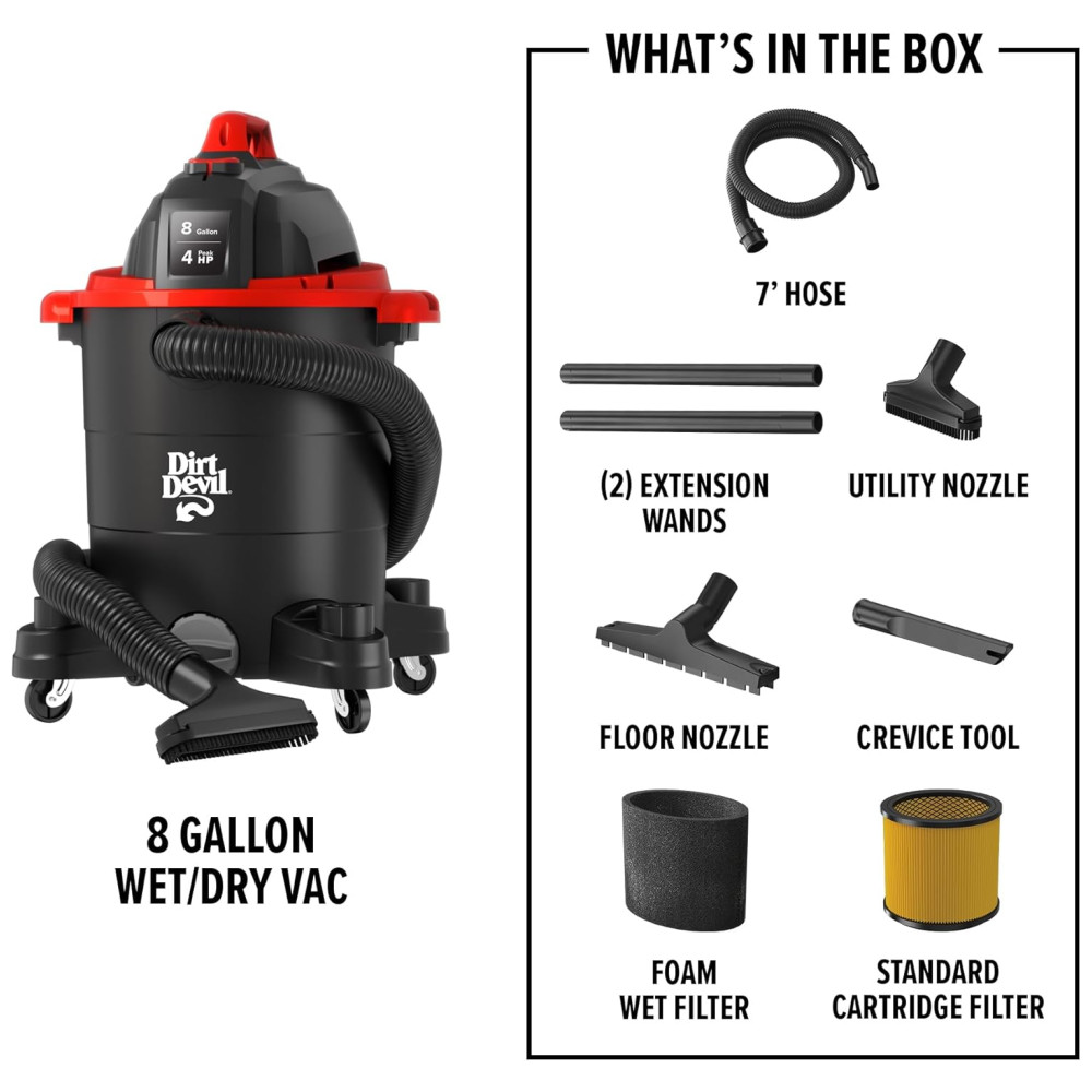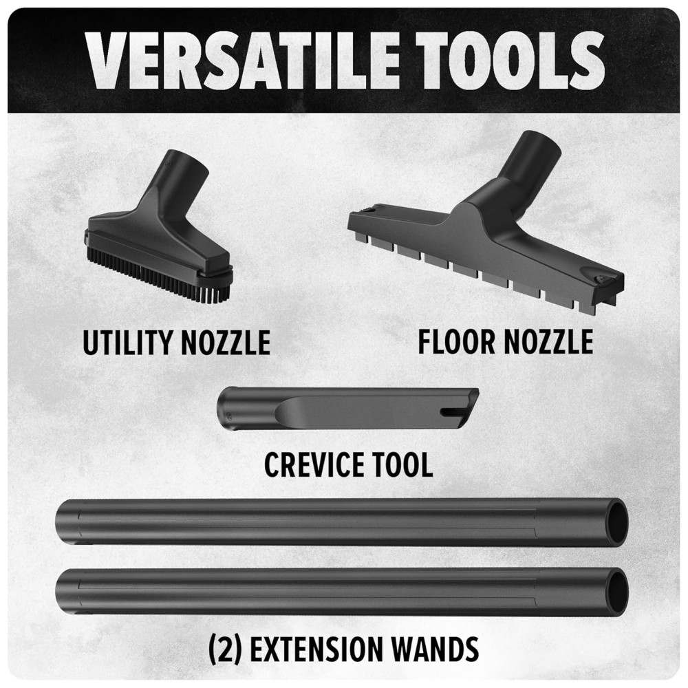 O aspirador WetDry Dirt Devil de 30,32 litros é um equipamento potente e versátil para tarefas de limpeza pesadas e variados tipos de sujeira. Com seu desempenho poderoso de 4CV de potência e uma porta de drenagem integrada, a limpeza se torna fácil e eficiente, independentemente se a sujeira é molhada ou seca. O produto vem com ferramentas incluídas e armazenamento integrado para fácil acesso às ferramentas ideais em diferentes situações. Além disso, o tanque de fácil esvaziamento e design de alta mobilidade permitem uma limpeza rápida e armazenamento conveniente. Com um alcance de 2,13 metros, é possível alcançar cantos e fendas com a mangueira extralonga. A alça superior balanceada e as rodas giratórias garantem fácil manobrabilidade para se mover de uma bagunça para outra. O tanque pode ser facilmente esvaziado removendo a parte superior para sujeiras secas ou abrindo o porta de drenagem para sujeiras úmidas.