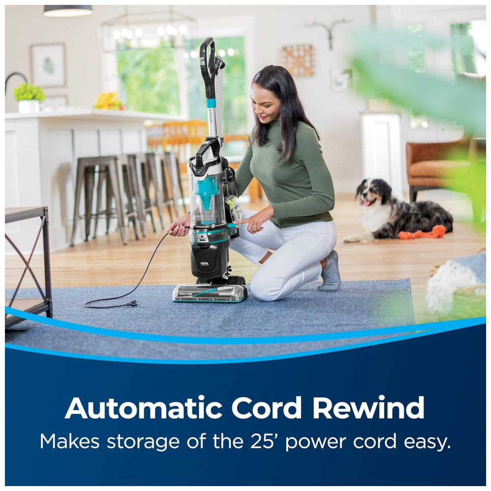 Um cabo de alimentação de 7,6 metros que proporciona flexibilidade para limpar de sala em sala sem desconectar com tanta frequência.