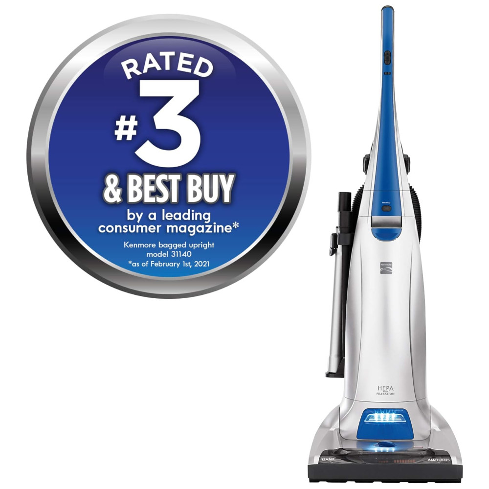 Aspirador de Pó Comercial 23 kg com Filtro HEPA Triplo Ajuste de Altura e 2 Motores que se Destaca na Força de Sucção 110V Kenmore Prata e Azul