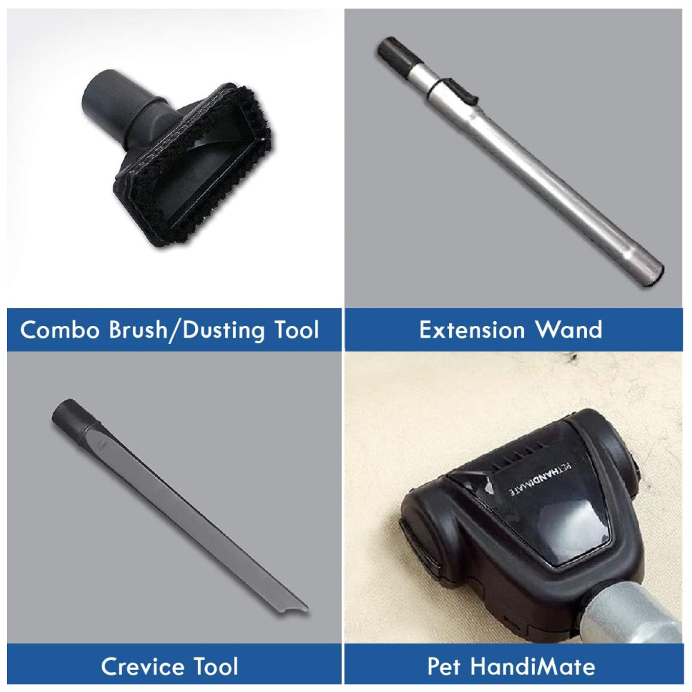 Os acessórios incluem Pet Handi Mate, bocal para poeira e fendas para limpar locais de difícil acesso e varinha telescópica de alumínio. Todos os acessórios são armazenados a bordo da unidade para fácil acesso e armazenamento. Torne o trabalho doméstico menos complicado, investindo neste aspirador ensacado Triple HEPA, adequado para animais de estimação, da Kenmore.