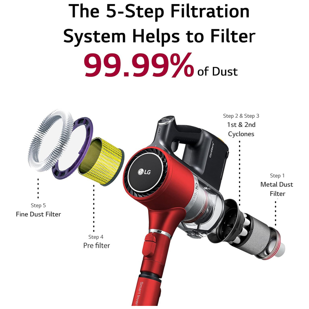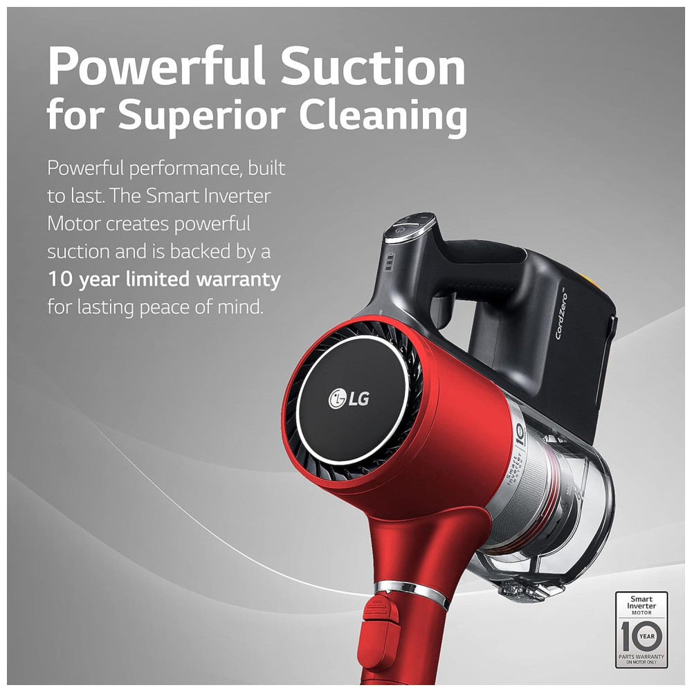 Experimente o poder duradouro deste aspirador LG, projetado para oferecer um desempenho robusto que perdura ao longo do tempo. Com o Motor Inteligente de Inversor do modelo A9, você desfrutará de uma sucção potente.