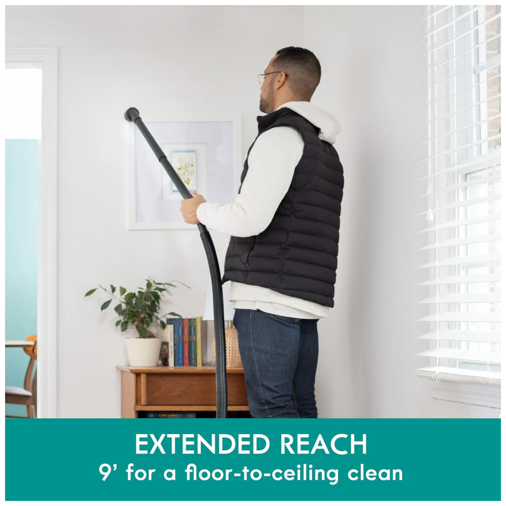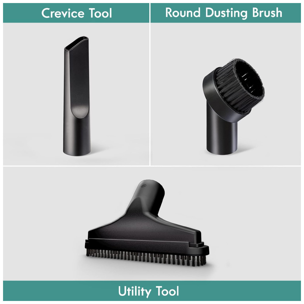 Componentes incluídos filtro de pano reutilizável, filtro úmido de espuma, saco de pó, mangueira, ferramenta para fendas, escova redonda para pó, ferramenta utilitária, bocal para piso multi superfície, rack de montagem em parede, varinhas de extensão.