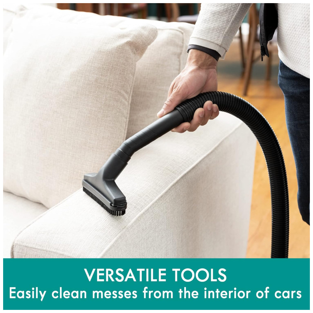 Este aspirador doméstico Kenmore de 12,13 litros e 2,5CV de potência é ideal para realizar trabalhos domésticos em superfícies secas ou molhadas. Com capacidade para capturar sujeira pesada em carpetes e pisos duros, este aspirador é fácil de manobrar de um espaço para outro com rodízios giratórios. Além disso, é possível converter o aspirador em um soprador para remover detritos ou aproveitar os 2,74 metros de alcance estendido para uma limpeza completa do chão ao teto. Com um design leve e uma alça superior, este aspirador permite que você realize qualquer trabalho em movimento. O suporte de parede incluído libera espaço de armazenamento e o sistema de armazenamento integrado mantém sua mangueira e acessórios organizados. Os acessórios versáteis incluem uma ferramenta para fendas, uma escova redonda para pó e uma ferramenta utilitária. Este aspirador é compacto e pode ser montado na parede para maximizar o espaço em sua área. Com uma mangueira de 6 metros e cabo de 15 metros, este aspirador multiuso é fácil de usar e oferece armazenamento a bordo para seus acessórios. Inclui filtro lavável, filtro de pano, saco de pó, três varinhas de extensão e mangueira.