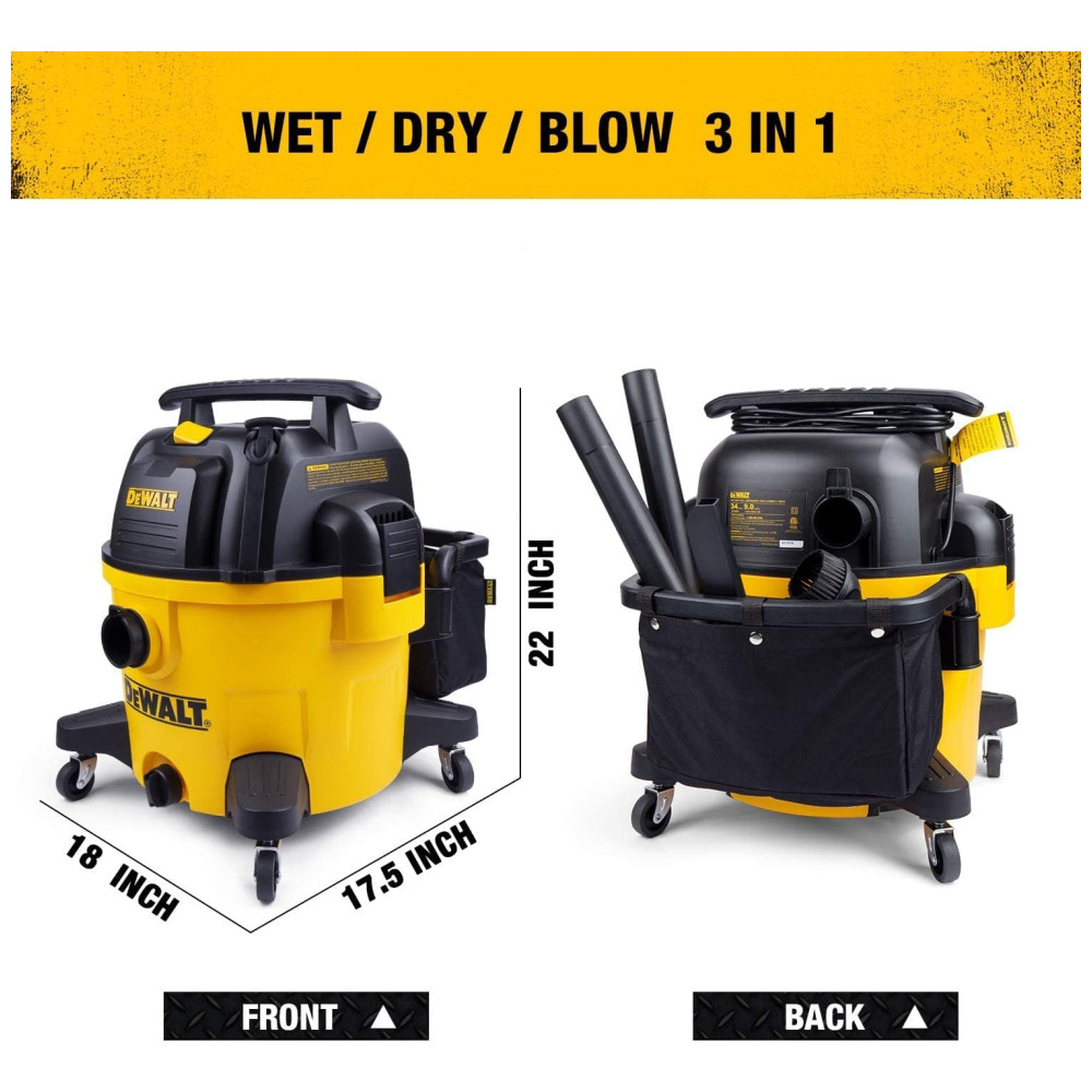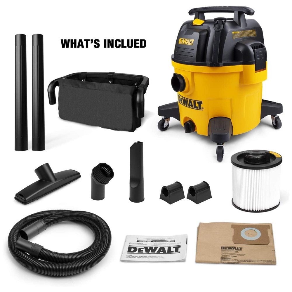 Componentes incluídos Bolsa de acessórios com suporte 1, filtro de conexão limpa 1, bocal para piso 1, aspirador úmido e seco Dewalt 1, bocal utilitário 1, bocal para fendas 1, escova redonda 1, mangueira 1 7 8×7 1, manual de instruções 1, varinha de extensão 2 , Saco de filtro descartável 1