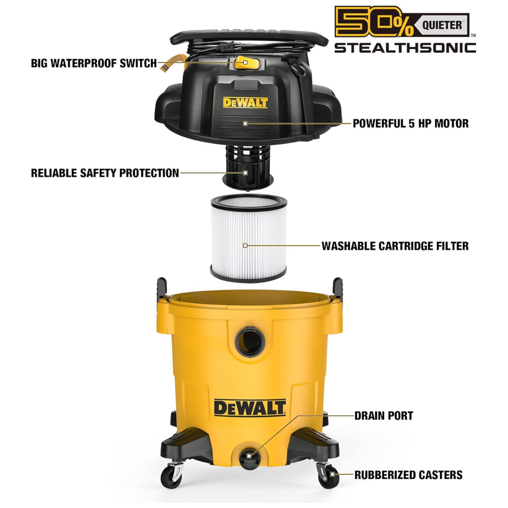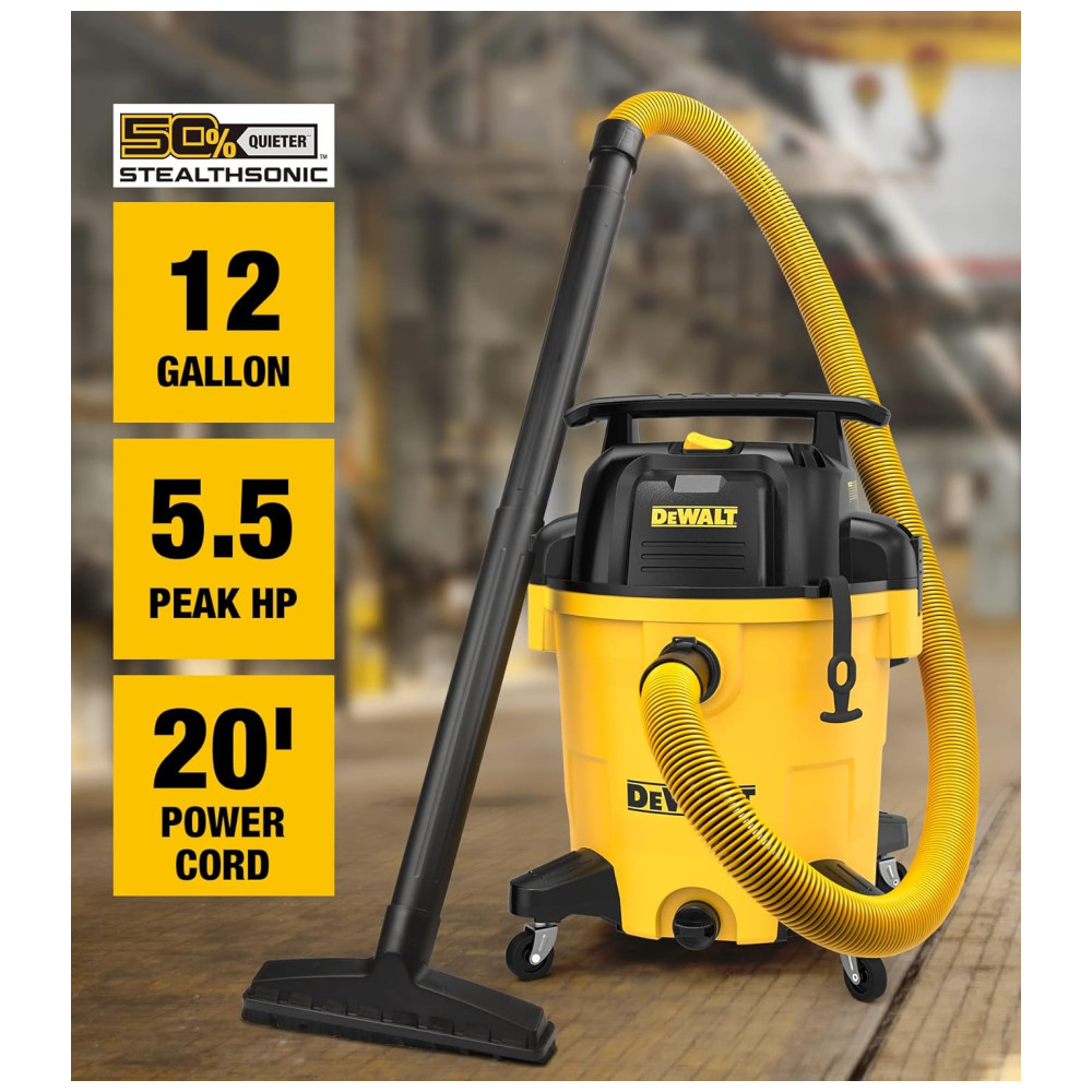 Aspirador de Pó e Líquidos 454L com Redução de Ruído Resistente à Água e Design Compacto 110V 300W DEWALT DXV12PQTA Amarelo
