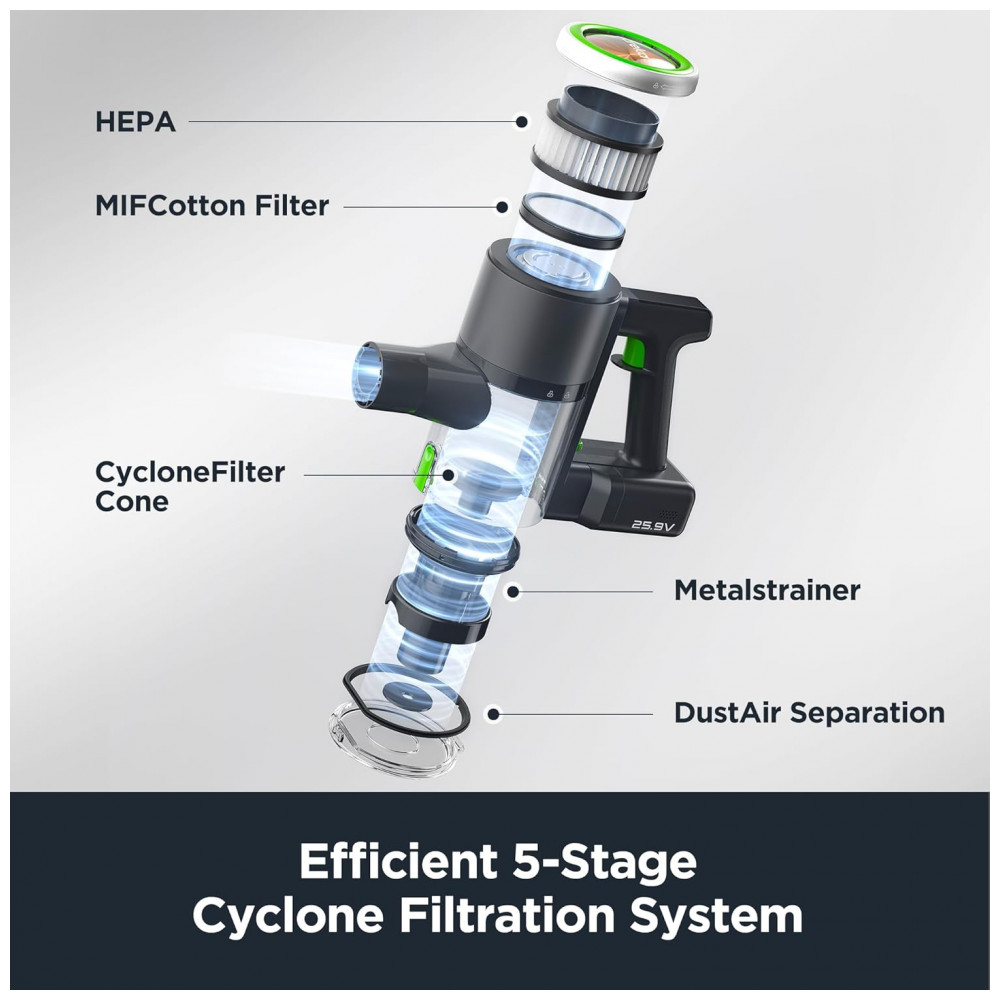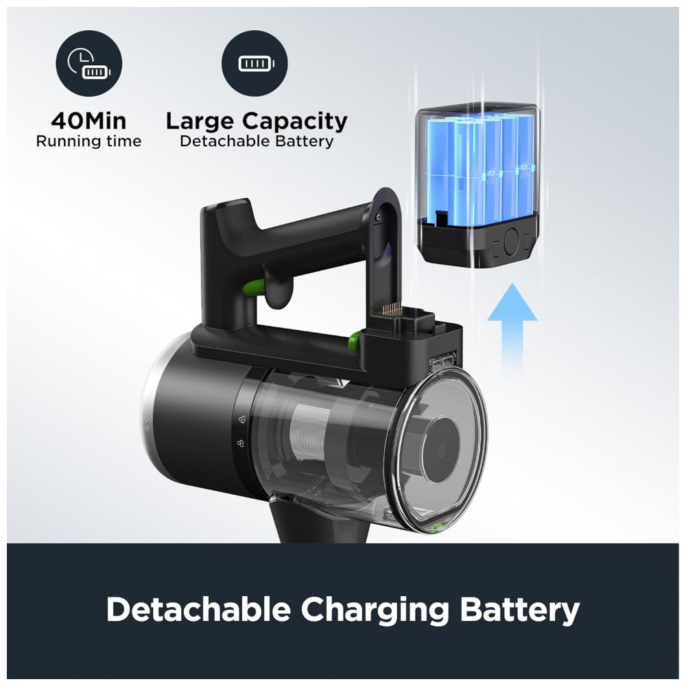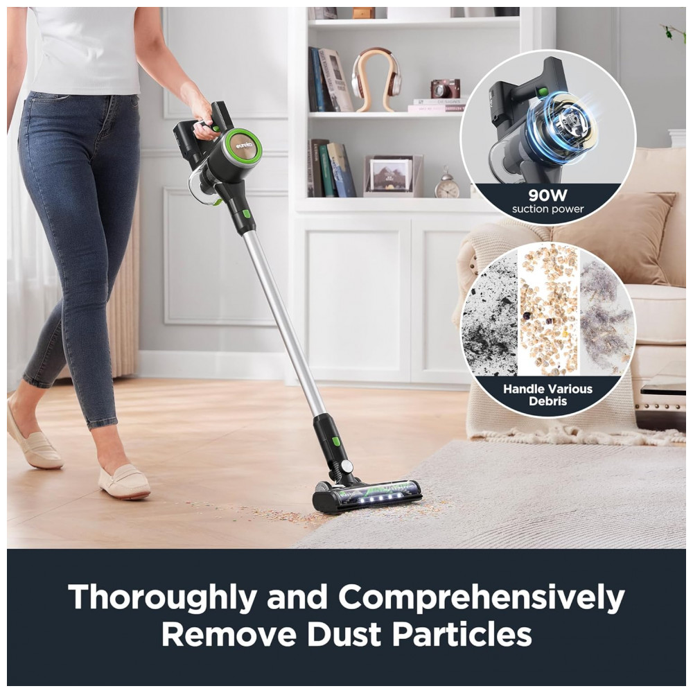 Você valoriza uma casa limpa e a Eureka se orgulha de oferecer soluções de limpeza para toda a casa para tornar a vida um pouco mais fácil. O Aspirador de Pó Sem Fio Eureka RapidClean Ultra é a sua solução definitiva para uma limpeza profunda diária sem esforço! Seu design leve facilita a manobra e o transporte para limpeza acima do chão em casa. A bateria removível e recarregável oferece até 40 minutos de autonomia com uma única carga, conveniente para limpeza contínua. O motor aprimorado proporciona sucção super poderosa para bagunças diárias e áreas de alto tráfego. O inovador sistema de filtragem ciclônica e o filtro HEPA separam e capturam até as menores partículas de poeira, devolvendo ar fresco. Além disso, possui bocal aprimorado, ferramenta para frestas 2 em 1 e escova para móveis, ideais para diferentes superfícies como piso duro, carpete, pelos de animais, etc. O filtro HEPA pode ser lavado e reutilizado sem custos adicionais. Não perca este incrível aspirador de pó sem fio para casa. Adquira hoje mesmo o Aspirador de Pó Eureka NEC370GR Cordless para uma casa mais limpa e fresca com facilidade.