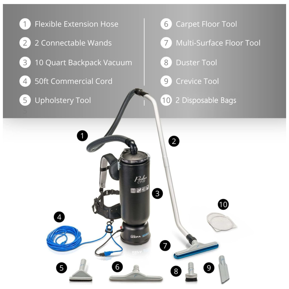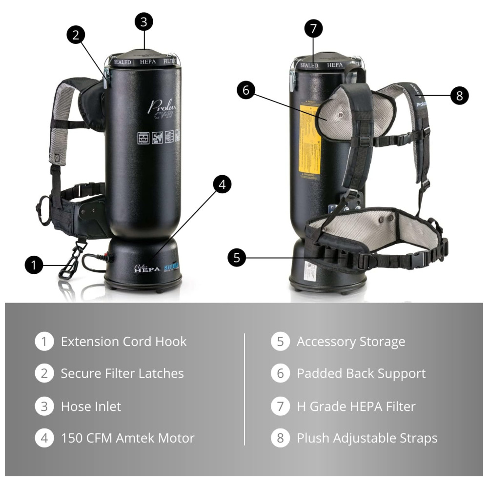 Aspirador de Pó Mochila Comercial 93L com Filtro HEPA e Acessórios Premium 110V 1100W Prolux Preto