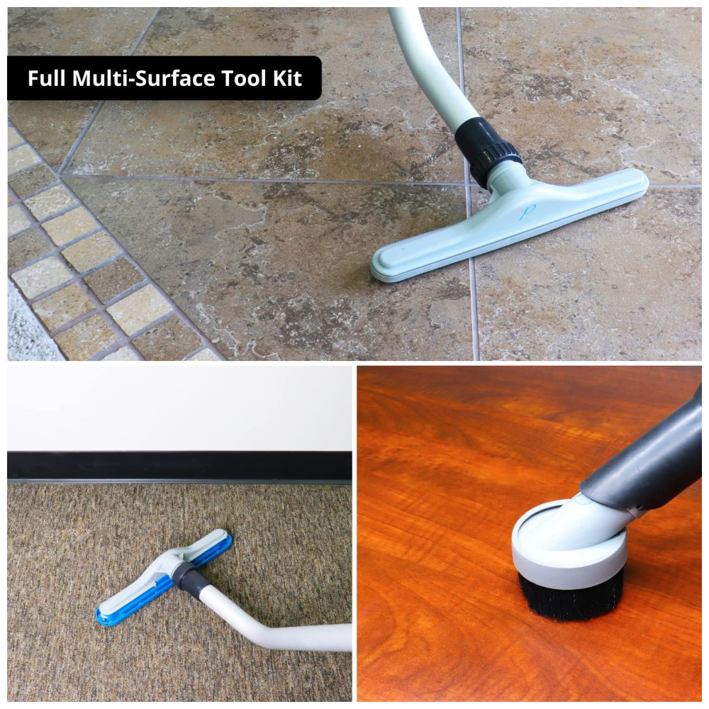 O kit completo de ferramentas multisuperfícies com 1,5 acessórios comerciais permite a limpeza em qualquer superfície de piso, incluindo madeira, azulejo, concreto, carpete e até mesmo tetos. Inclui acessórios e ferramentas premium fáceis de usar, como uma escova de espanador, ferramenta para estofamento com escova deslizante, ferramenta para fendas e 2 ferramentas de piso multisuperfície de luxo. O novo e aprimorado filtro HEPA selado de grau H cobre 353 polegadas quadradas, dura 17x mais que os concorrentes e é 15 CFM mais alto. Uma área de superfície maior retém poeira e permite melhor fluxo de ar para melhor sucção durante todo o ciclo de enchimento. O poderoso poder de limpeza de 150 CFM permite perda zero de sucção, para que você possa limpar em uma passagem em vez de duas. Aumente sua faixa de limpeza com o cabo de extensão de nível comercial 15 metros e Varinha ajustável de 38 mm e mangueira de vácuo de alta qualidade permitem uma varredura conveniente. Possui alças de mochila ajustáveis fáceis de usar e pesa apenas 4,99 quilos.