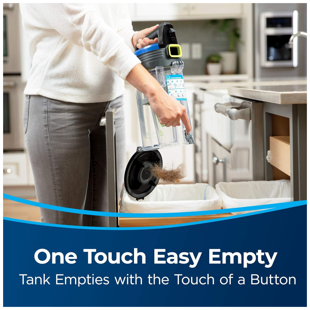 Esvaziamento Fácil com um Toque: Diga adeus à sujeira e pelos de animais em suas mãos. O inovador sistema de esvaziamento permite que os pelos se acumulem ao redor do tanque, longe dos filtros, liberando-os facilmente e de maneira higiênica com apenas um toque.