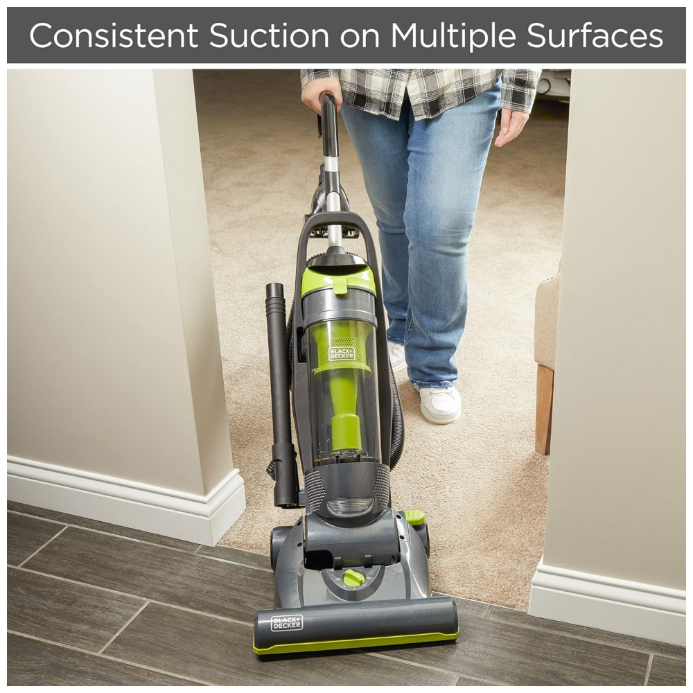 Conheça o Aspirador Vertical Sem Saco BLACK+DECKER, com Ação Ciclônica: Gira rapidamente detritos para longe do filtro, mantendo a potência de sucção mais forte por mais tempo.