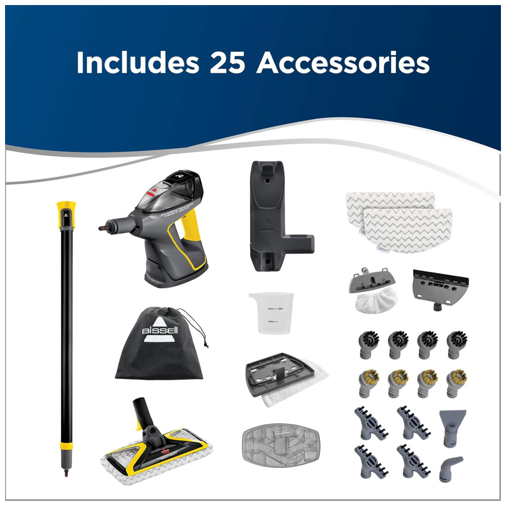 Apresentando o BISSELL Power Steamer Heavy Duty 3 em 1 Steam Mop e SteamShot portátil – o limpador de vapor multiuso para serviços pesados que oferece limpeza sem igual em uma variedade de superfícies, tanto internas quanto externas!